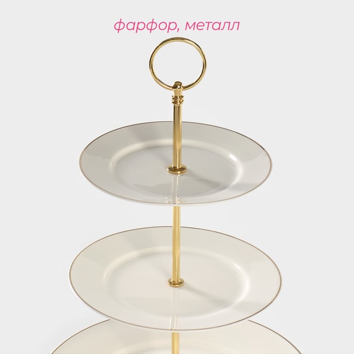 Этажёрка - фруктовница круглая Доляна «Аделин», 3 яруса, d=15/18/23 см, фарфор, цвет белый — Характеристики