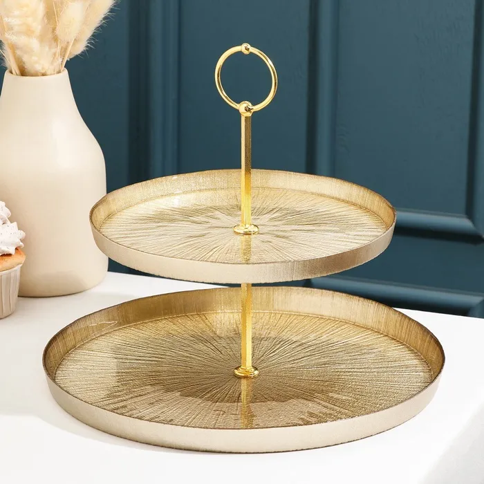 Двухъярусная конструкция дает возможность одновременно подавать несколько видов пищи, например, основное блюдо с гарниром или разные виды закусок и десертов.