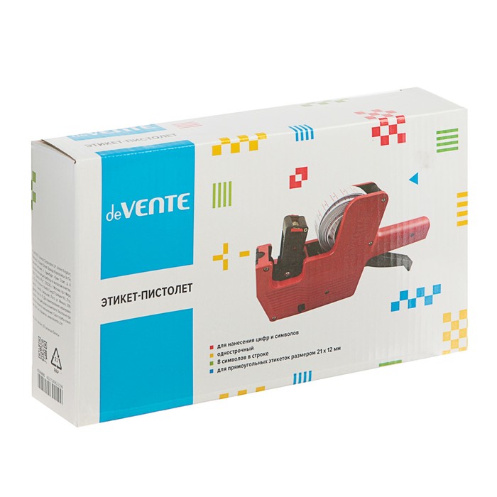 Этикет-пистолет "deVENTE" 1-строчный, 8 символов, для прямоугольных этикеток 21x12 мм, красный цвет корпуса.
