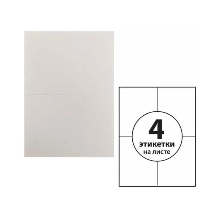 Этикетки А4 самоклеящиеся, 50 листов, 80 г/м², на листе 4 этикетки размером 105×148 мм, белые, МИКС: глянцевая или матовая — Характеристики