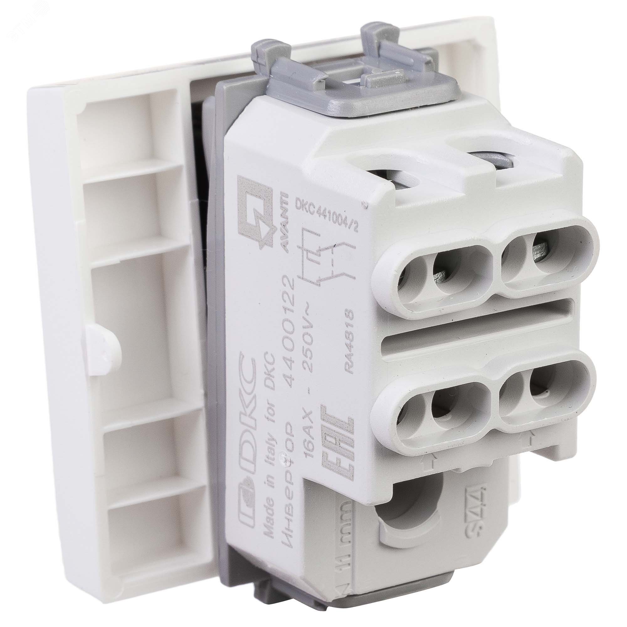 Инвертор одноклавишный модульный. Назначение – для монтажа в систему пластиковых коробов ''In-liner Front'' и систему организации рабочих мест ''Sotto'' при помощи рамок-суппортов и каркасов ''Avanti'' (код 4400912 и т.д.). Используется для включения/выключения освещения с трех и более точек. Характеристики – диаметр отверстий для ввода кабелей - 3 мм (по 2 отверстия на одну клемму), винтовые зажимы, шаблон для зачистки кабеля - 11 мм, номинальный ток - 16 A, номинальное напряжение - 230 В, фиксация в подрозеточные коробки при помощи каркаса с лапками (код 4400802) и саморезов. Количество модулей – 2. Цвет – ''Белое облако''.