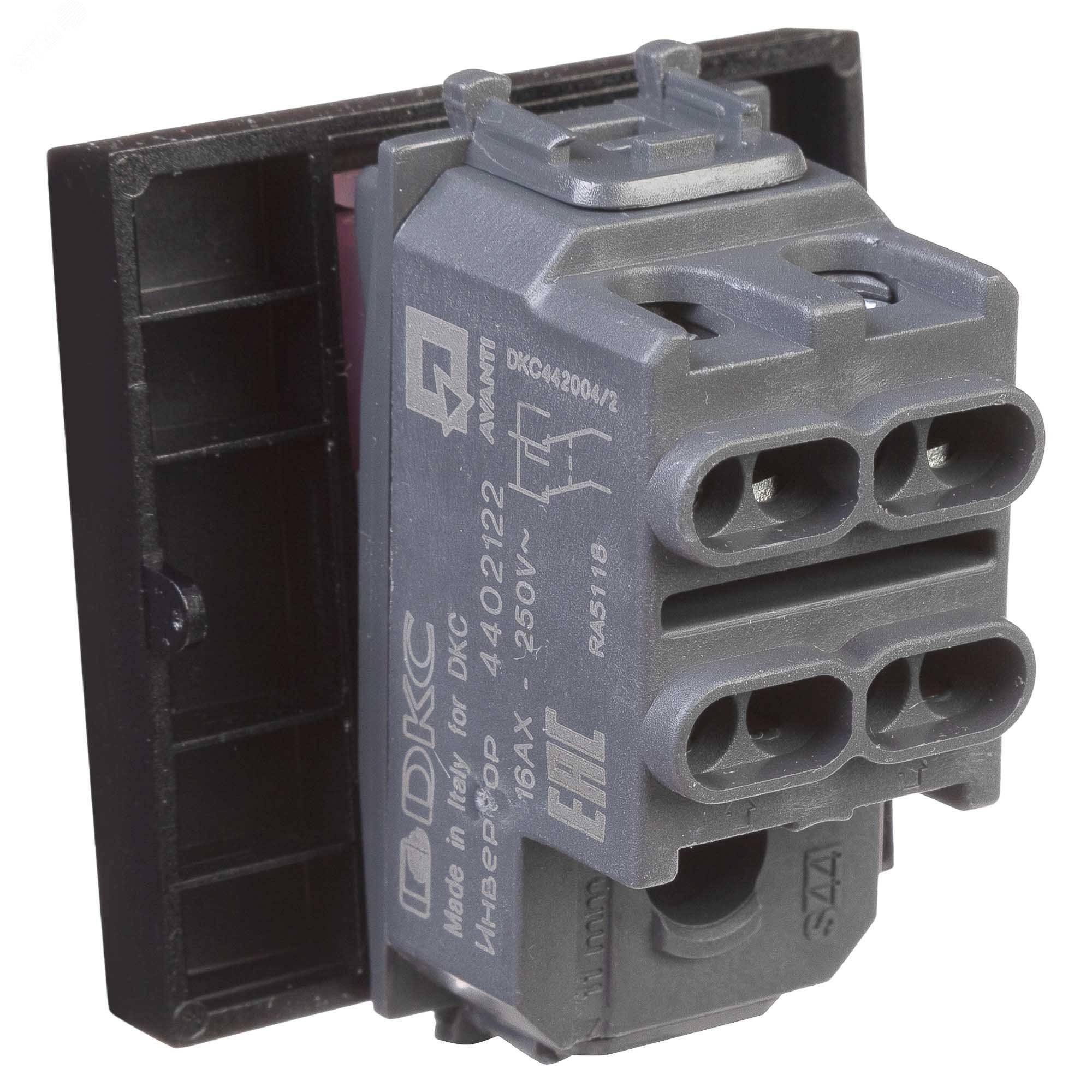 Инвертор одноклавишный модульный. Назначение – для монтажа в систему пластиковых коробов ''In-liner Front'' и систему организации рабочих мест ''Sotto'' при помощи рамок-суппортов и каркасов ''Avanti'' (код 4400912 и т.д.). Используется для включения/выключения освещения с трех и более точек. Характеристики – диаметр отверстий для ввода кабелей - 3 мм (по 2 отверстия на одну клемму), винтовые зажимы, шаблон для зачистки кабеля - 11 мм, номинальный ток - 16 A, номинальное напряжение - 230 В, фиксация в подрозеточные коробки при помощи каркаса с лапками (код 4400802) и саморезов. Количество модулей – 2. Цвет – ''Черный квадрат''.