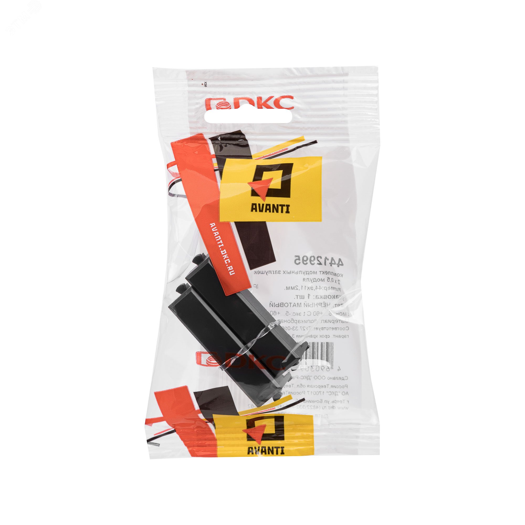 Комплект модульных заглушек. Назначение: для монтажа в систему пластиковых кабельных коробов ''In-liner Front'' и систему организации рабочих мест ''Sotto'' (в т.ч. кабель-каналы и короба ''Aero'') при помощи рамок-суппортов и каркасов ''Avanti'' (код 4400912 и т.д.). Используется для вывода и фиксации кабеля. Количество модулей: 0,5. Количество в упаковке: 2. Цвет: ''Черный матовый''.