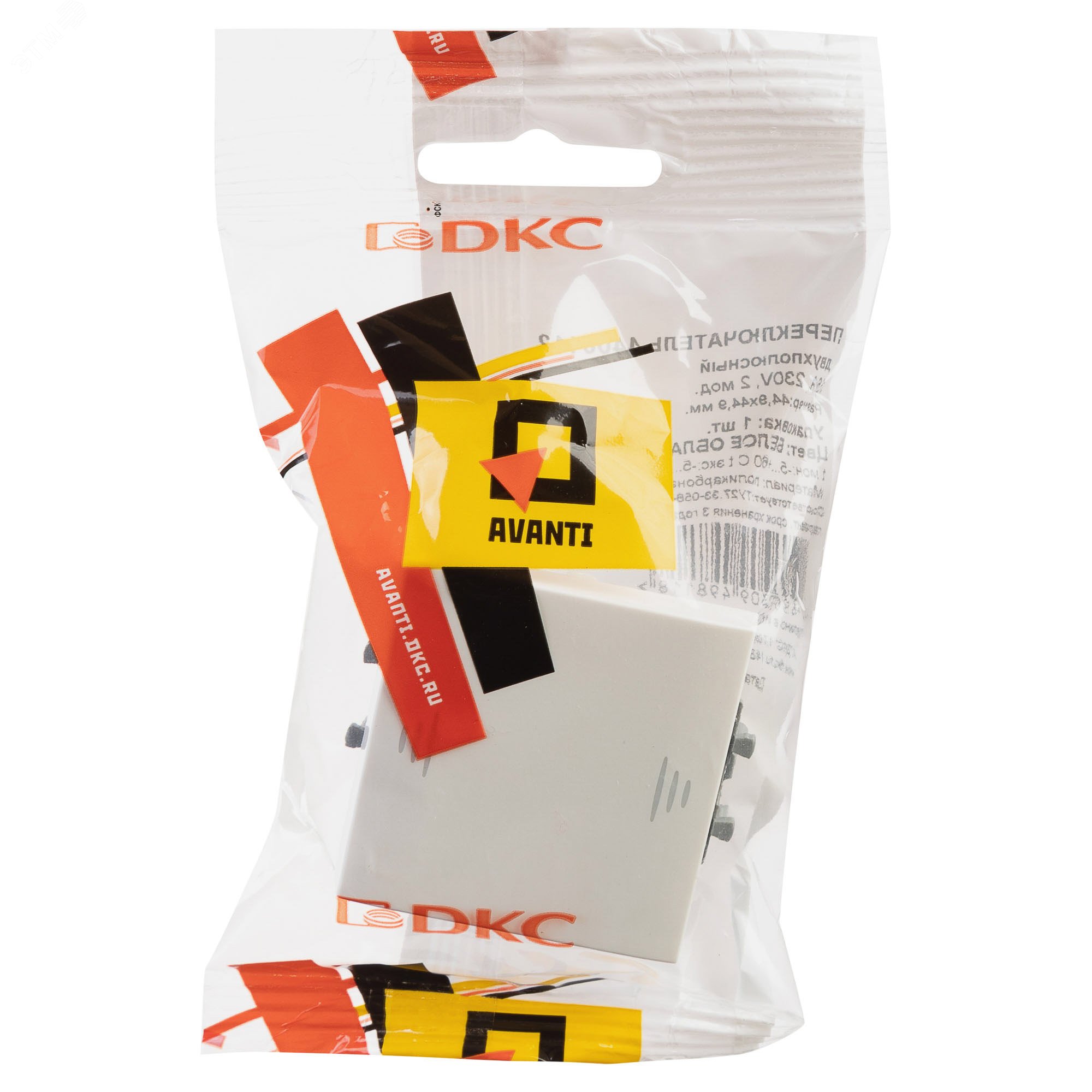 Переключатель модульный серии ''Avanti''. Предназначен для монтажа в систему пластиковых коробов ''In-liner Front'' и систему организации рабочих мест ''Sotto'' при помощи рамок-суппортов и каркасов ''Avanti'' (код 4400912 и т.д.), используется для включения/выключения освещения из двух мест. Диаметр отверстий для ввода кабелей - 3 мм (по 2 отверстия на одну клемму), винтовые зажимы, шаблон для зачистки кабеля - 11 мм, номинальное напряжение - 230 В. Фиксация в подрозеточные коробки при помощи каркаса с лапками (код 4400802) и саморезов. 2 модуля. Цвет – ''Белое облако''.