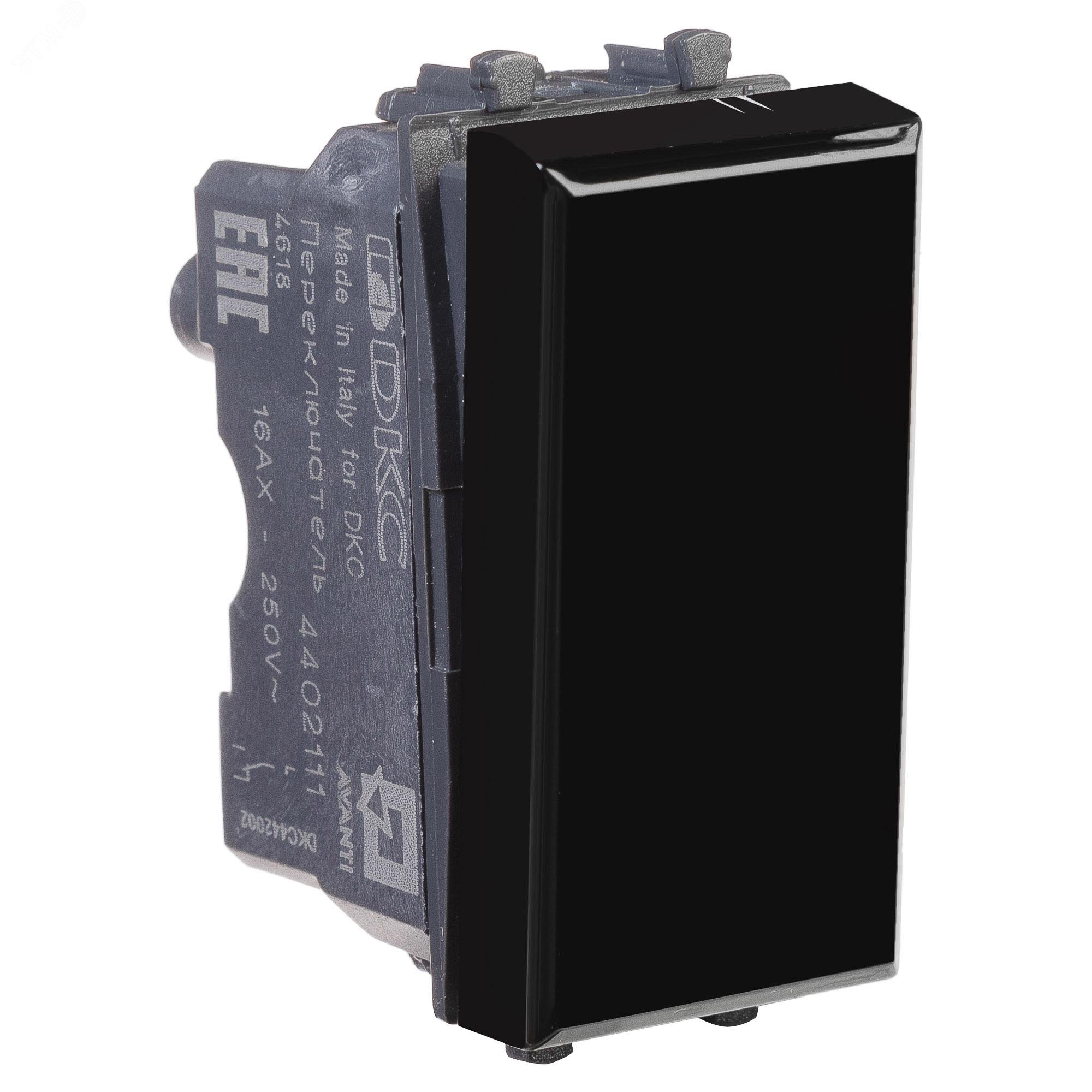 Переключатель модульный серии ''Avanti''. Предназначен для монтажа в систему пластиковых коробов ''In-liner Front'' и систему организации рабочих мест ''Sotto'' при помощи рамок-суппортов и каркасов ''Avanti'' (код 4400912 и т.д.), используется для включения/выключения освещения из двух мест. Диаметр отверстий для ввода кабелей - 3 мм (по 2 отверстия на одну клемму), винтовые зажимы, шаблон для зачистки кабеля - 11 мм, номинальное напряжение - 230 В. Фиксация в подрозеточные коробки при помощи каркаса с лапками (код 4400802) и саморезов. 1 модуль. Цвет – ''Черный квадрат''.