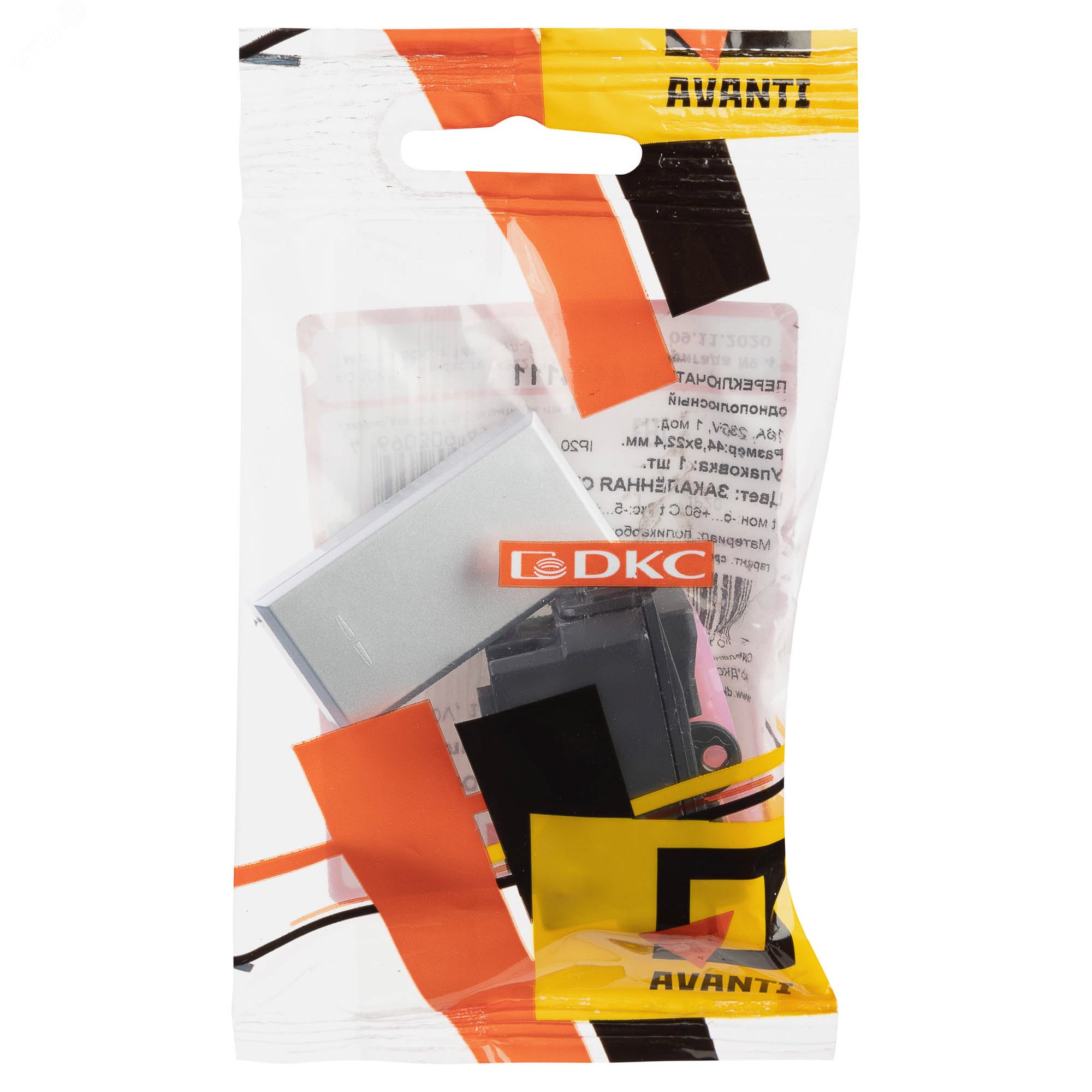 Переключатель модульный серии ''Avanti''. Предназначен для монтажа в систему пластиковых коробов ''In-liner Front'' и систему организации рабочих мест ''Sotto'' при помощи рамок-суппортов и каркасов ''Avanti'' (код 4400912 и т.д.), используется для включения/выключения освещения из двух мест. Диаметр отверстий для ввода кабелей - 3 мм (по 2 отверстия на одну клемму), винтовые зажимы, шаблон для зачистки кабеля - 11 мм, номинальное напряжение - 230 В. Фиксация в подрозеточные коробки при помощи каркаса с лапками (код 4400802) и саморезов. 1 модуль. Цвет – ''Закаленная сталь''.