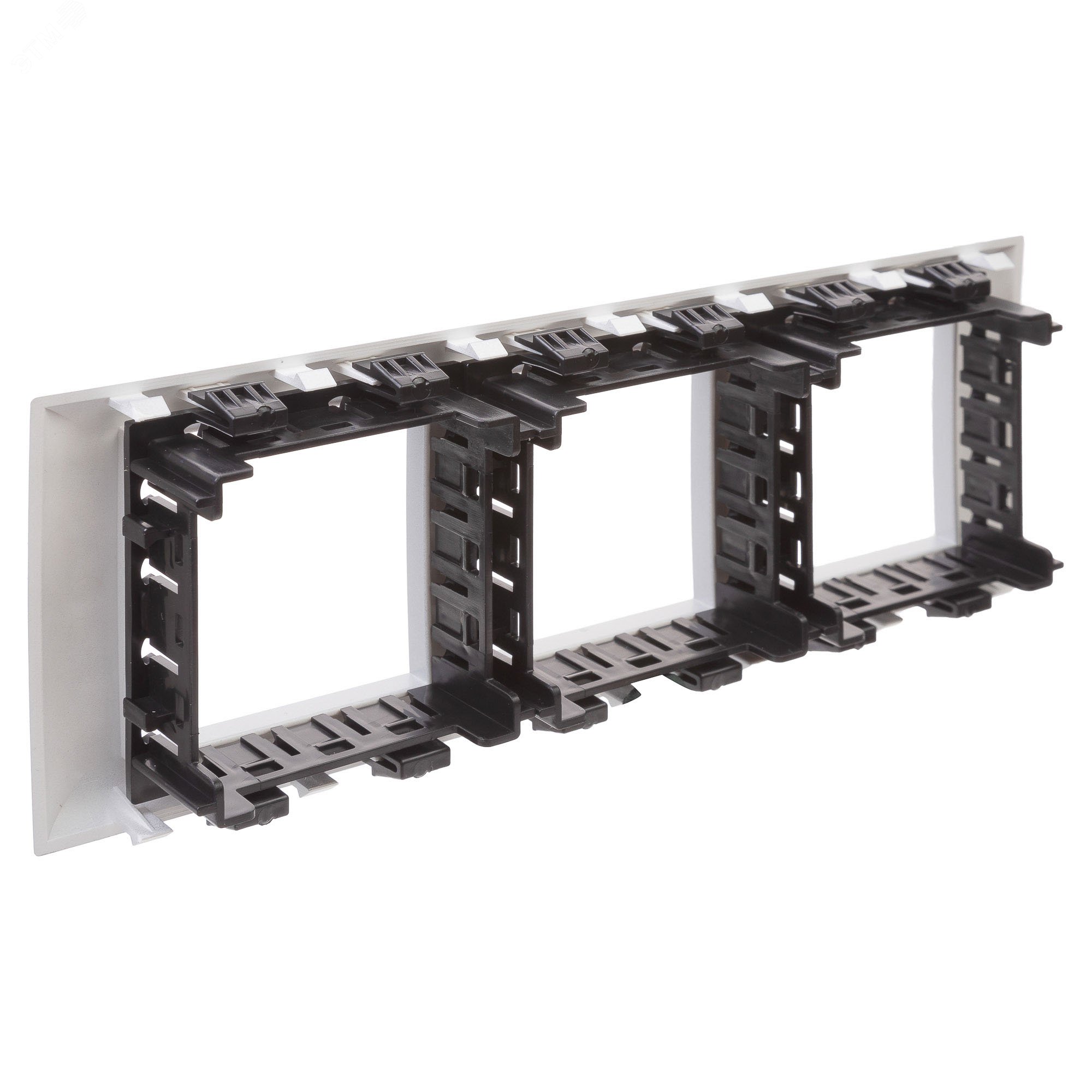 Рамка-суппорт на 6 модулей в комплекте с каркасом для монтажа в систему кабельных коробов 'In-liner Front' и систему организации рабочих мест 'Sotto' (алюминиевые кабель-каналы, колонны, башенки и лючки). Назначение – для монтажа в кабель-каналы, башенки, лючки, колонны. Характеристики – материал – АБС-пластик, устанавливается на каркасы 4402812 (каркасы 4402812 идут в комплекте с рамками-суппортами). Цвет – Серебристый металлик.