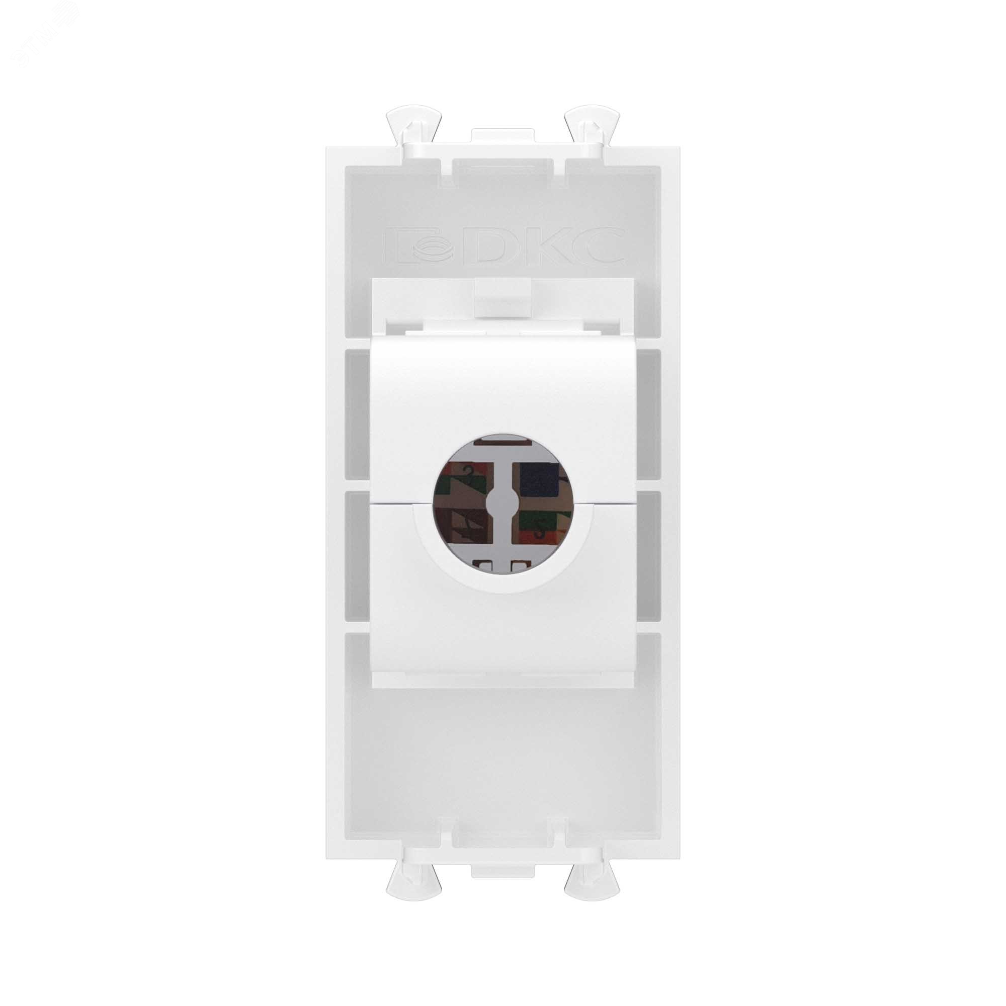Данная компьютерная розетка RJ45 предназначена для монтажа на рабочем месте в системах ''In-liner Front'' и ''In-liner Aero'', а также может использоваться в других системах организации рабочих мест, где требуется подключение сетевого кабеля. Она имеет категорию 5е, 8 контактов, пылезащитную шторку, маркировочную табличку и разъем Keystone в комплекте. Возможна заделка контактов без использования инструмента. Монтаж розетки производится в подрозеточных коробках глубиной не менее 45 кв.мм и фиксируется с помощью каркаса с лапками и саморезов.