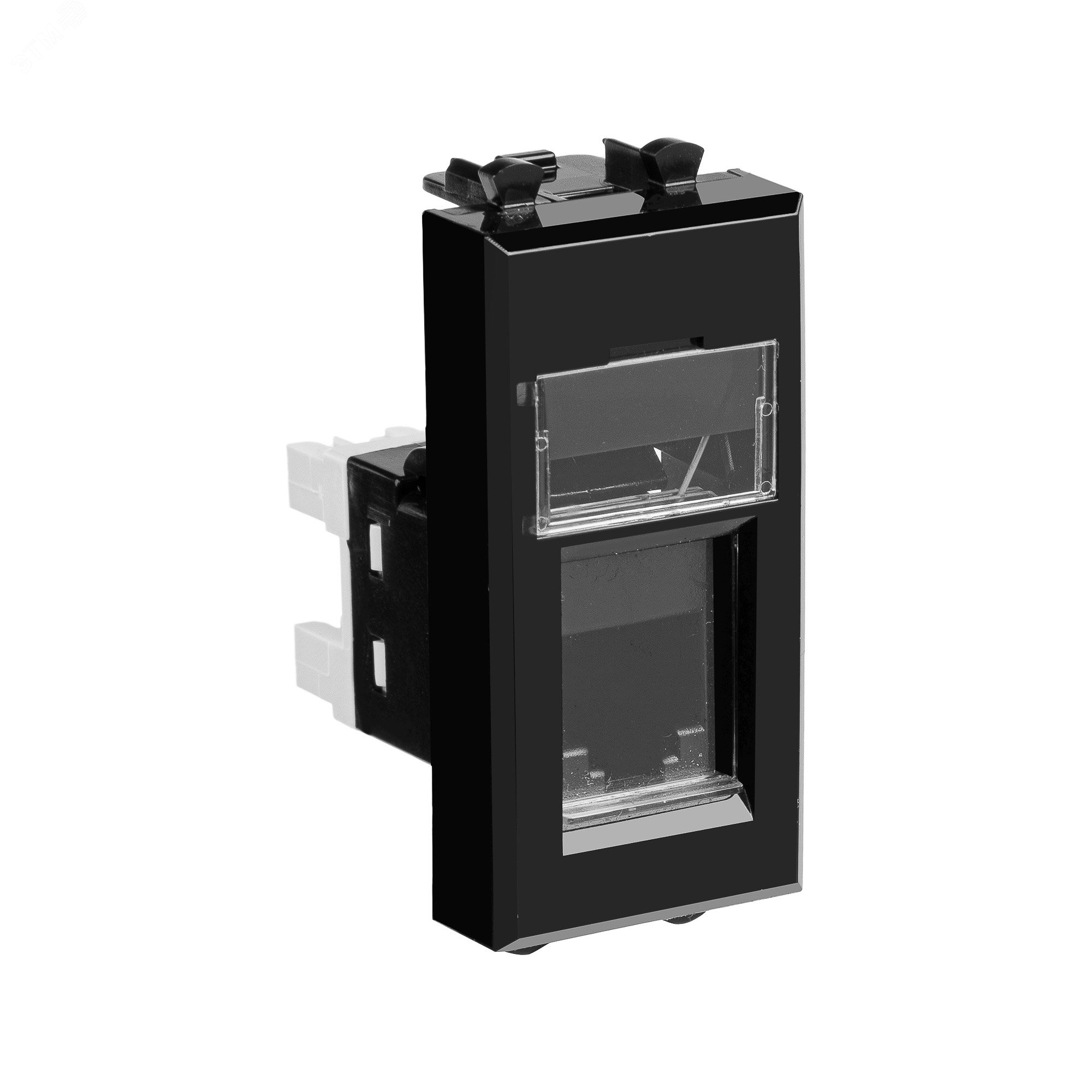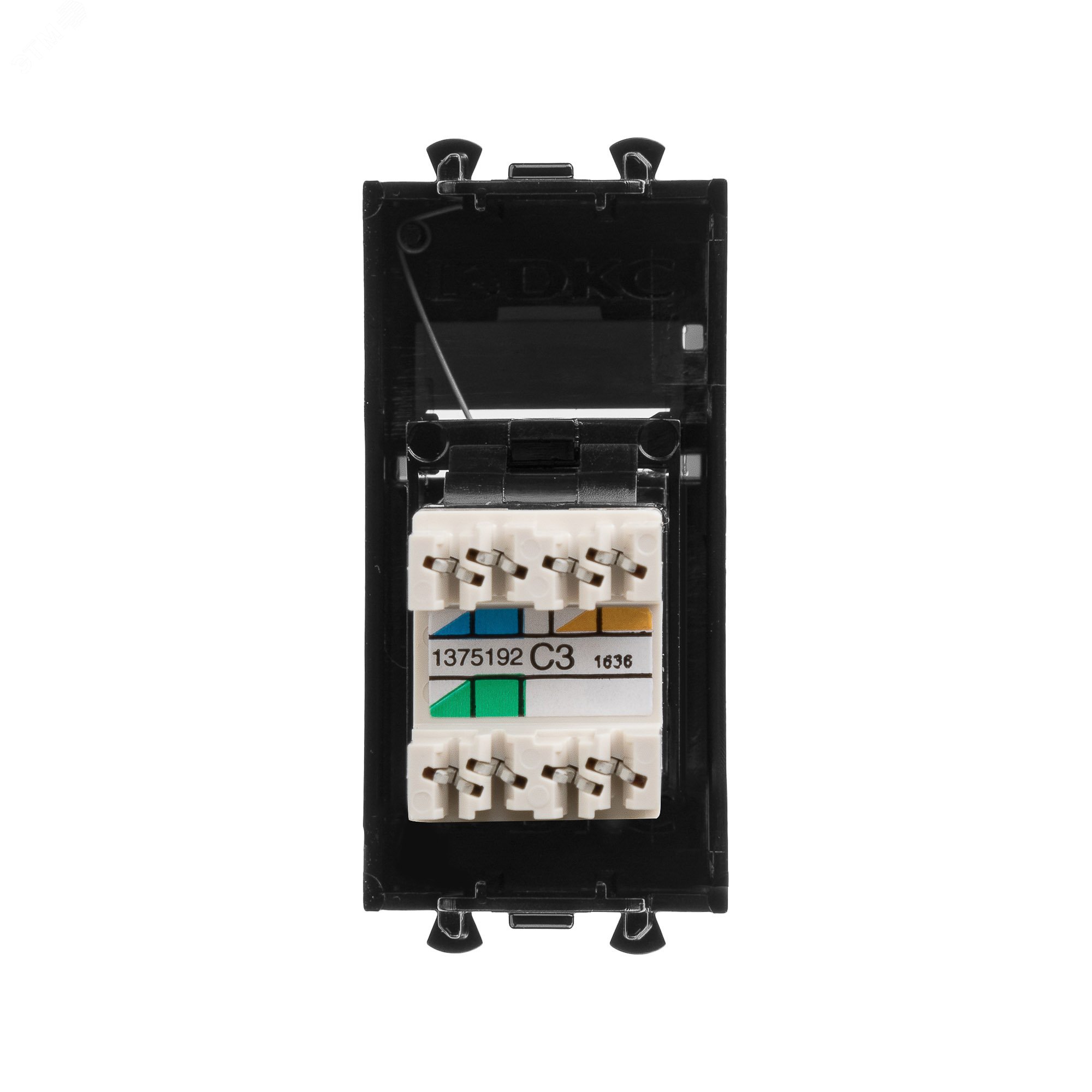 Телефонная розетка RJ-12 модульная. Предназначена для монтажа в систему кабельных коробов ''In-liner Front'', систему алюминиевых кабельных коробов и колонн ''Aero'', лючки и башенки BUS, при помощи рамок-суппортов и каркасов ''Avanti'' (код 4400912 и т.д.). Служит для подключения телефонного кабеля к рабочему месту. 6P6C. С пылезащитной шторкой, с маркировочной табличкой. В комплекте разъем Keystone. Для заделки контактов используется инструмент типа 110. Фиксация в подрозеточные коробки глубиной не менее 45 мм при помощи каркаса с лапками (код 4400802) и саморезов. 1 модуль. Цвет: ''Черный квадрат''