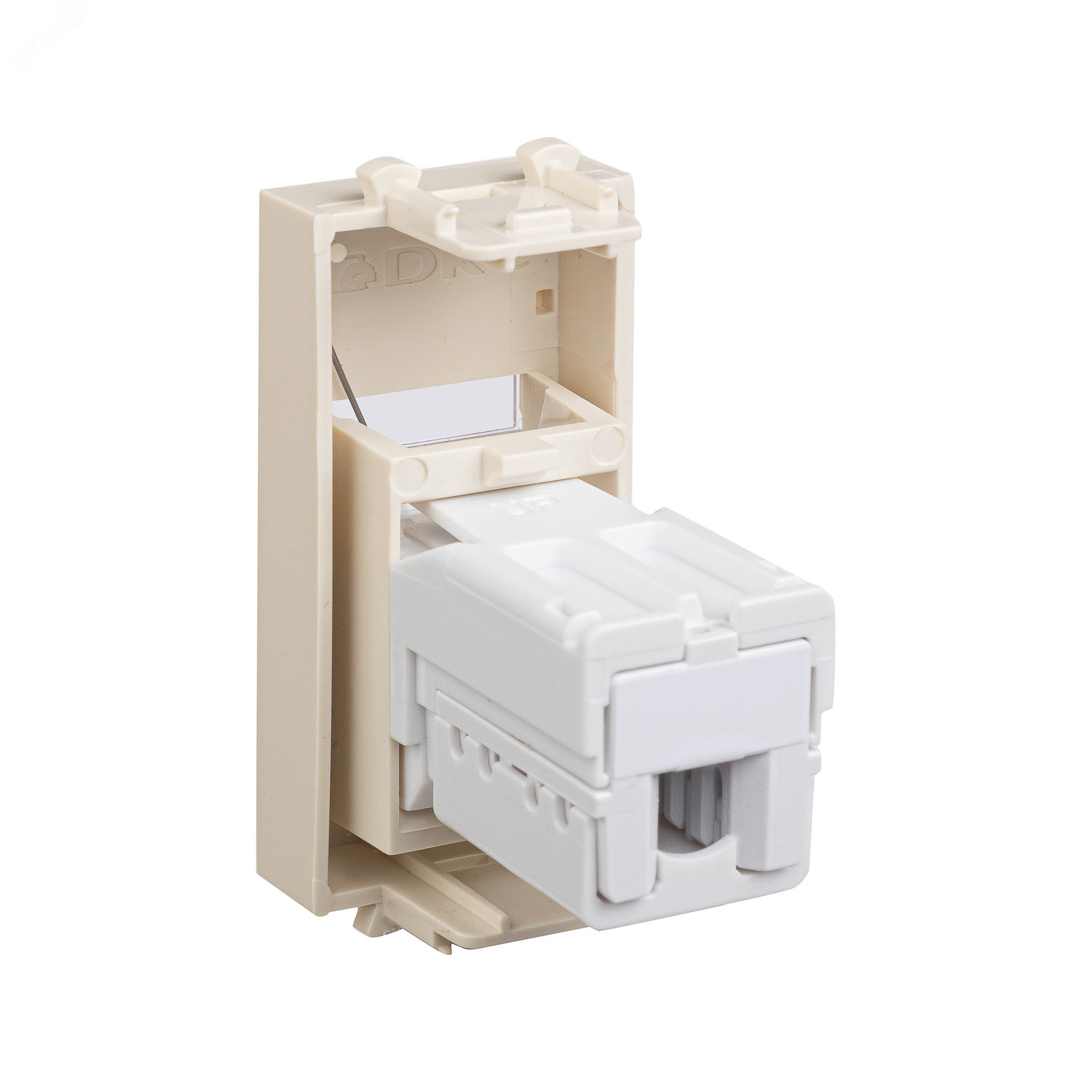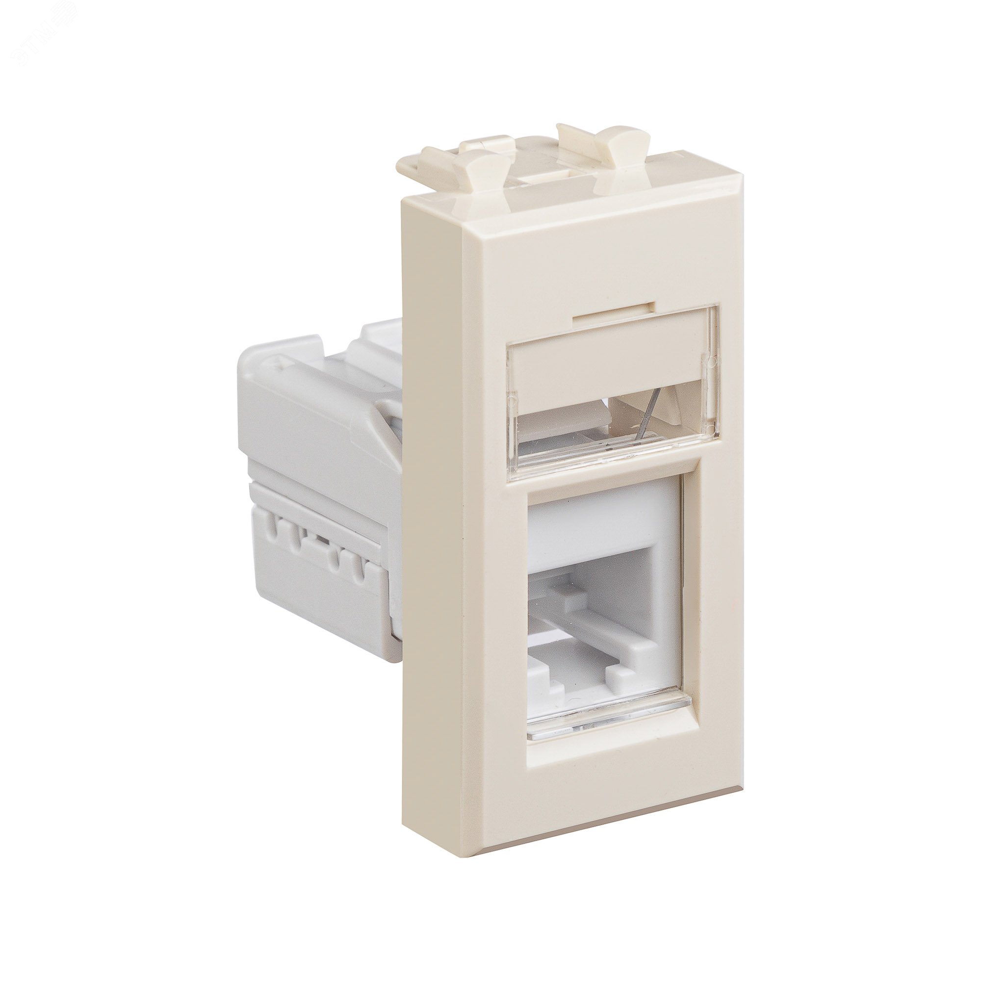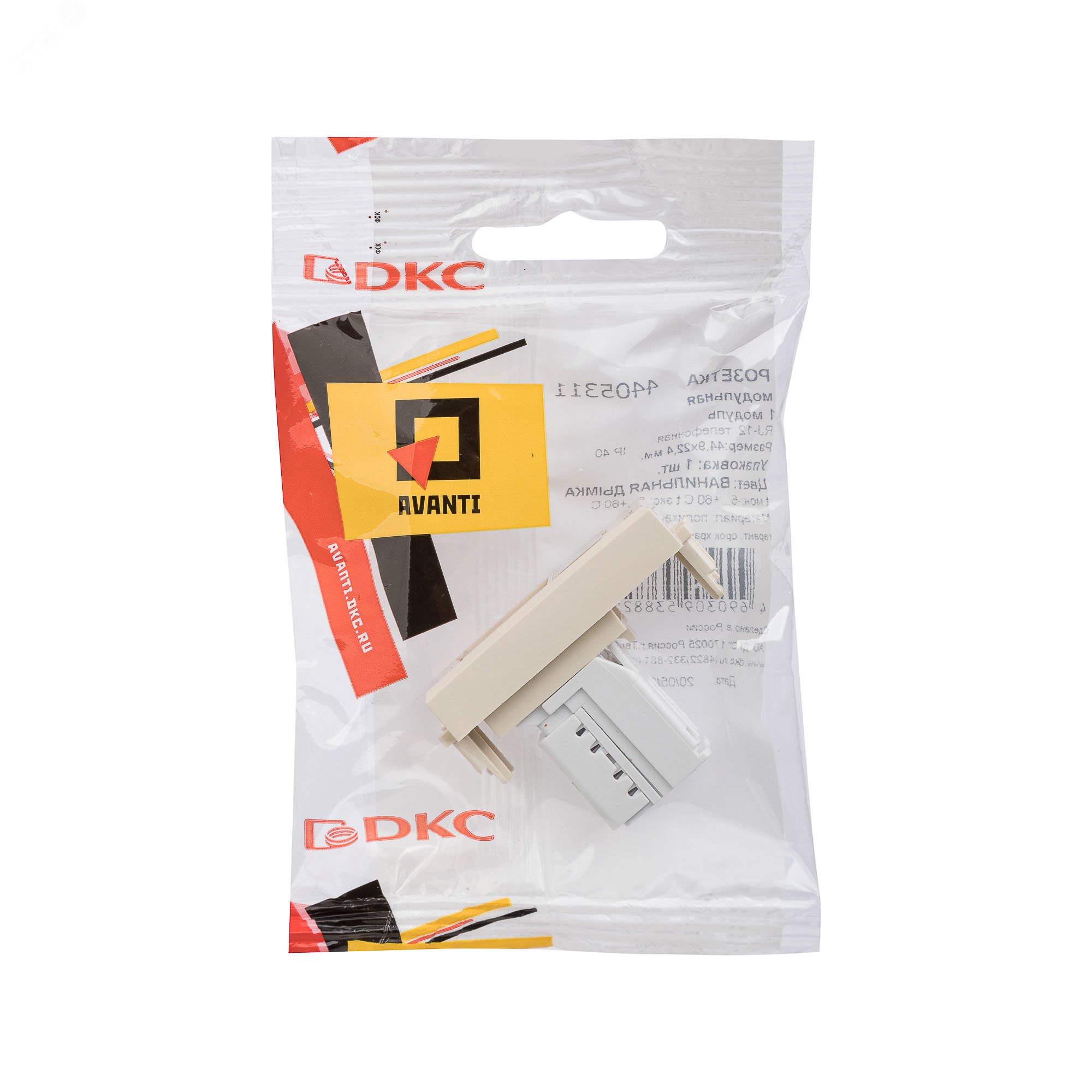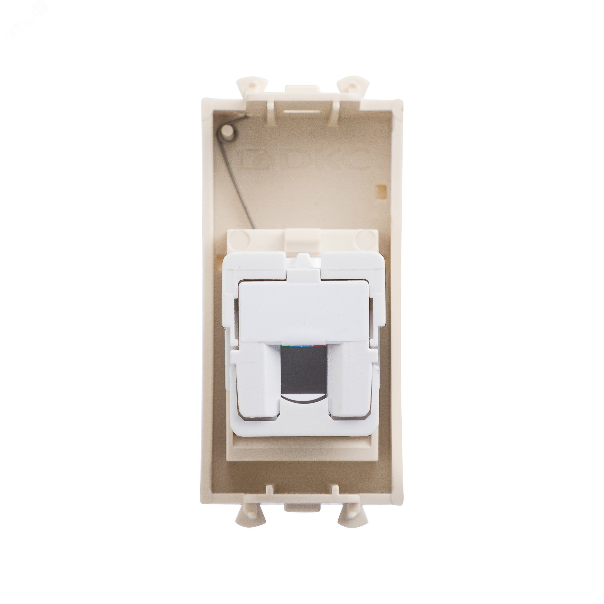 Телефонная розетка RJ-12 модульная. Предназначена для монтажа в систему кабельных коробов ''In-liner Front'' и систему организации рабочих мест ''Sotto'' при помощи рамок-суппортов и каркасов ''Avanti'' (код 4400912 и т.д.). Используется для подключение телефонного кабеля к рабочему месту. 6P6C. С пылезащитной шторкой, с маркировочной табличкой. В комплекте разъем Keystone. Для заделки контактов используется инструмент типа 110. Фиксация в подрозеточные коробки глубиной не менее 45 мм при помощи каркаса с лапками (код 4400802) и саморезов. 1 модуль. Цвет: ''Ванильная дымка''