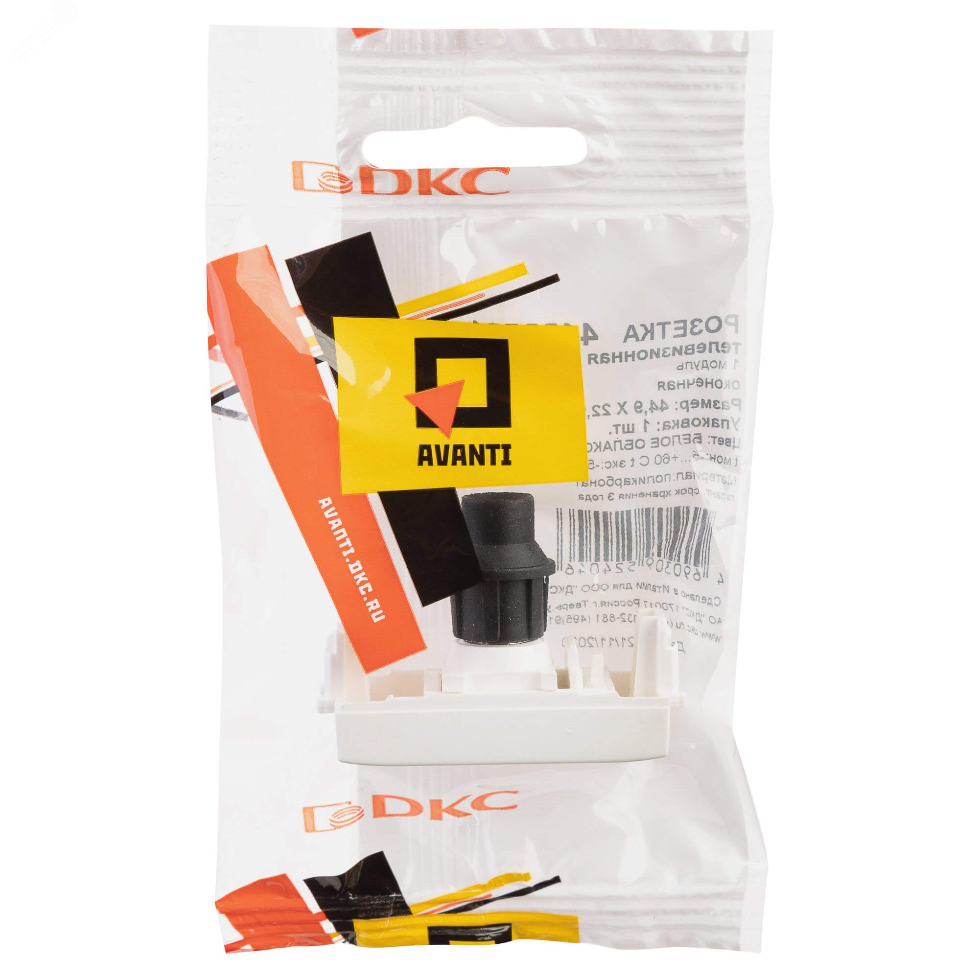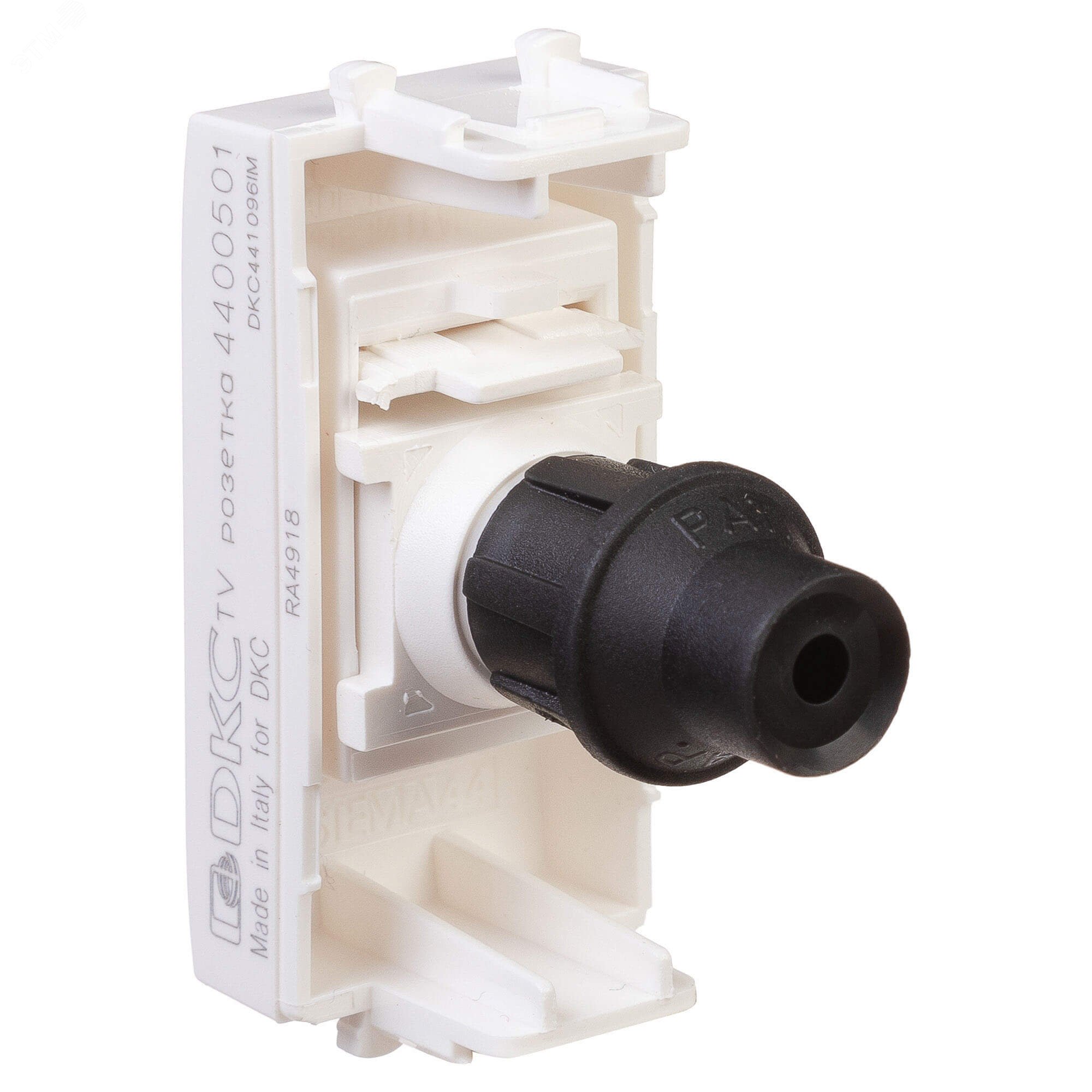 Розетка TV оконечная модульная. Назначение- для монтажа в системы 'In-liner Front' и 'In-liner Aero' при помощи рамок-суппортов и каркасов 'Avanti' (код 4400912 и т.д.), подключения телевизионного кабеля. Характеристики- диапазон рабочих частот 4–2400 МГц, затухание