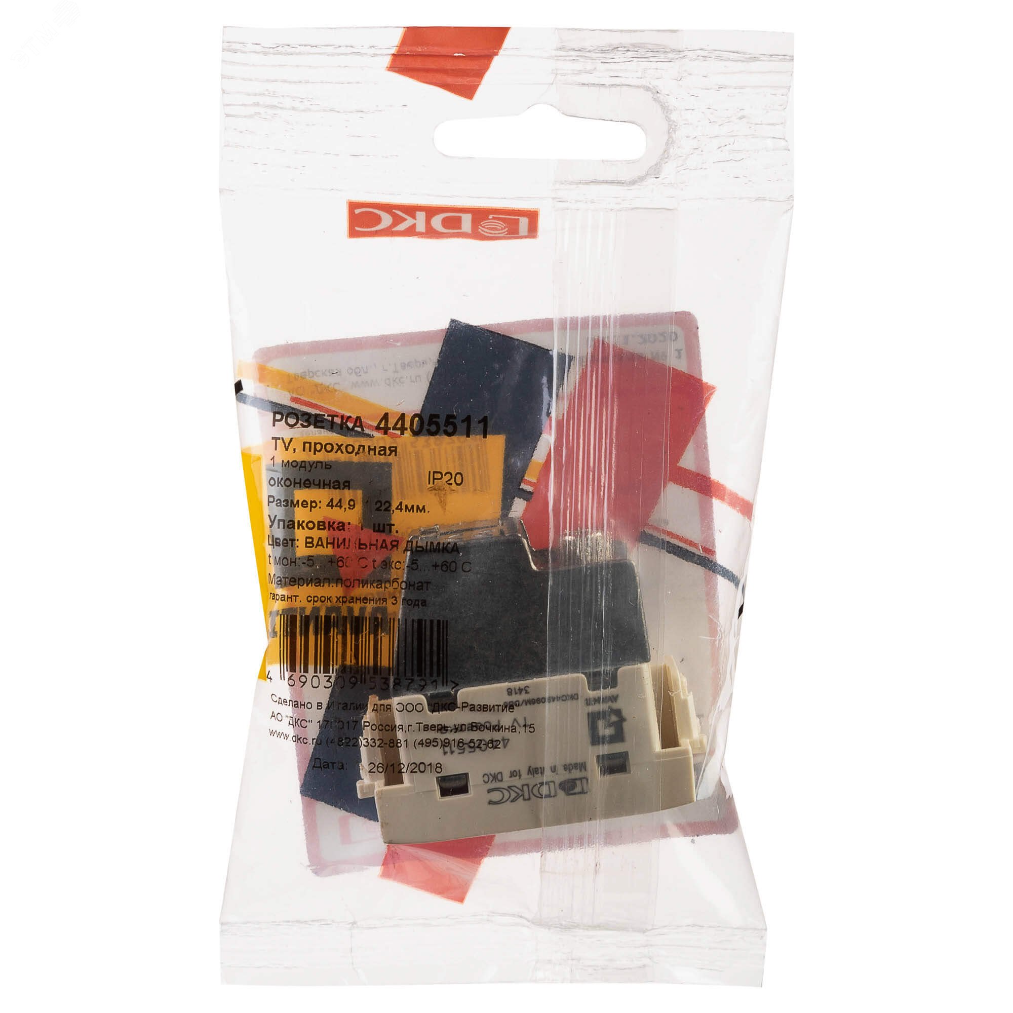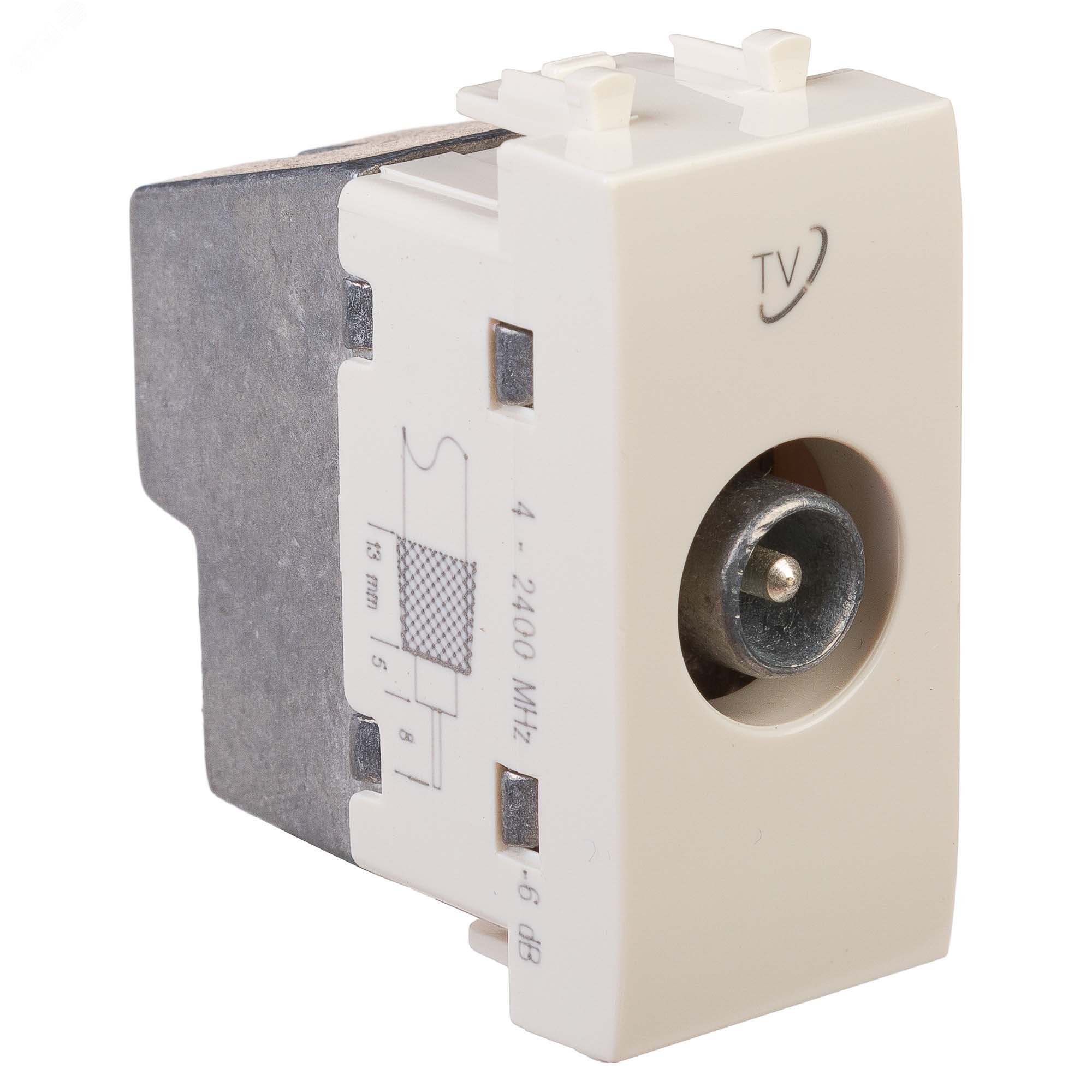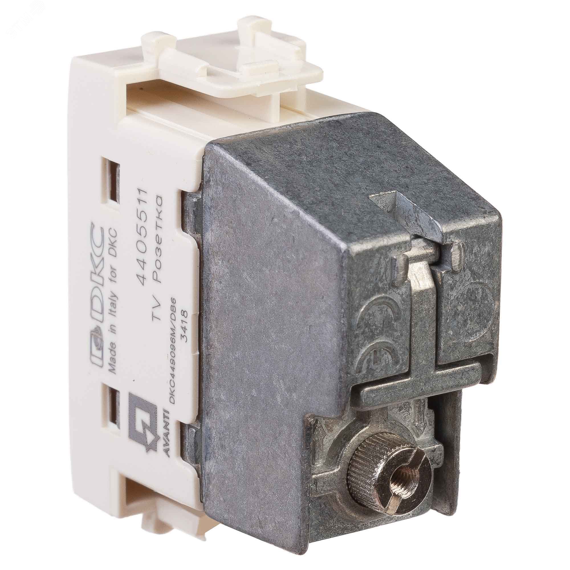 Розетка TV проходная модульная. Предназначена для монтажа в систему кабельных коробов ''In-liner Front'' и систему организации рабочих мест ''Sotto'' при помощи рамок-суппортов и каркасов ''Avanti'' (код 4400912 и т.д.). Используется для подключения телевизионного кабеля. Винтовые зажимы. Диапазон рабочих частот 4–2400 МГц, затухание.