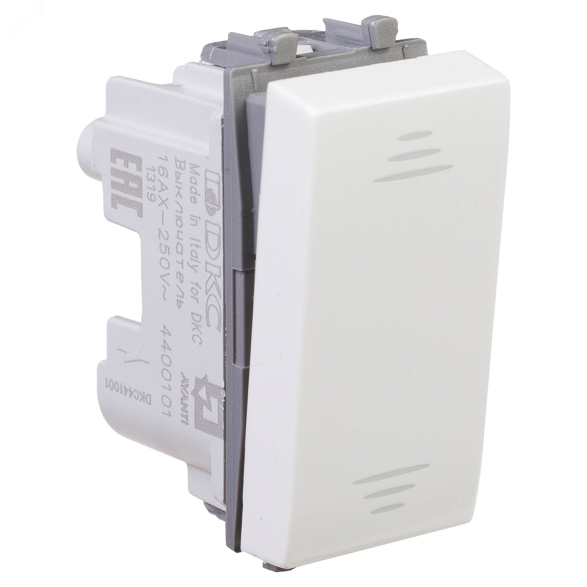 Выключатель одноклавишный однополюсный, модульный. Предназначен для монтажа в систему пластиковых коробов ''In-liner Front'' и систему организации рабочих мест ''Sotto'' при помощи рамок-суппортов и каркасов ''Avanti'' (код 4400912 и т.д.), используется для включения/выключения освещения. Характеристики – диаметр отверстий для ввода кабелей - 3 мм (по 2 отверстия на одну клемму), винтовые зажимы, шаблон для зачистки кабеля - 11 мм, номинальный ток - 16 A, номинальное напряжение - 230 В, возможна фиксация в подрозеточные коробки при помощи каркаса с лапками (код 4400802) и саморезов. 1 модуль. Цвет – ''Белое облако''.