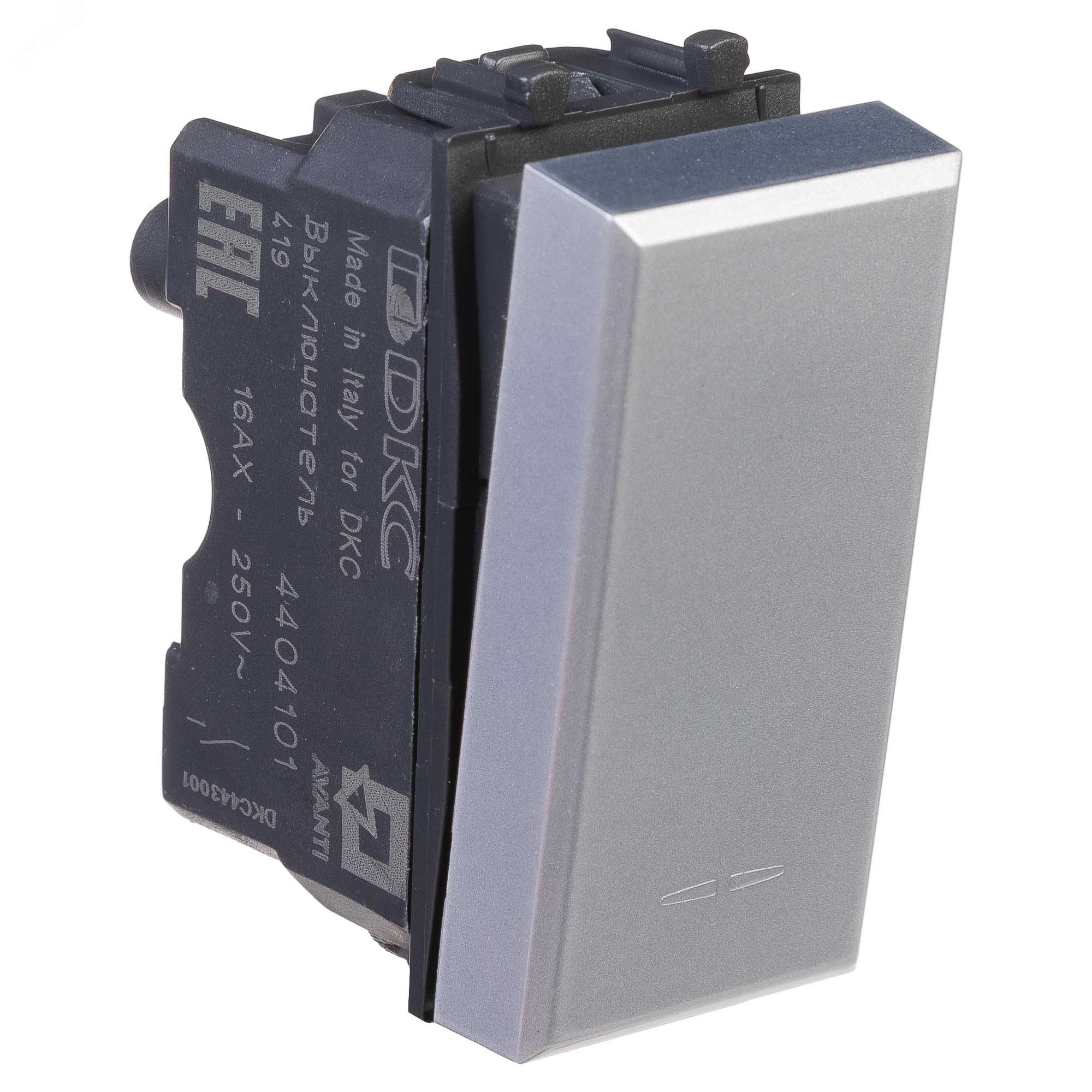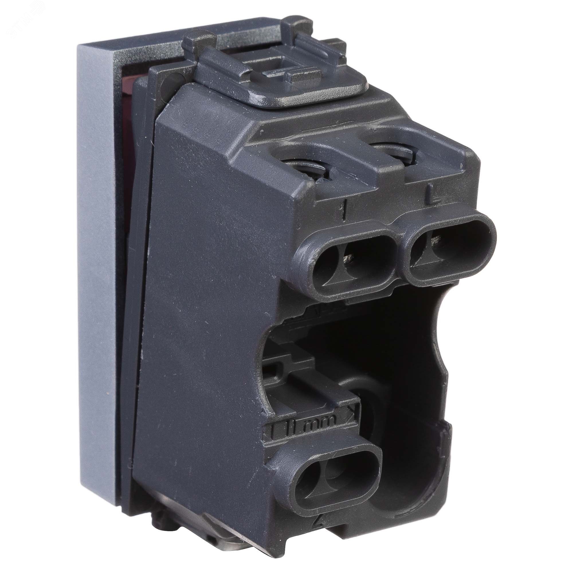 Выключатель одноклавишный однополюсный, модульный. Предназначен для монтажа в систему кабельных коробов ''In-liner Front'' и систему организации рабочих мест ''Sotto'' при помощи рамок-суппортов и каркасов ''Avanti'' (код 4400912 и т.д.), используется для включения/выключения освещения. Характеристики – диаметр отверстий для ввода кабелей - 3 мм (по 2 отверстия на одну клемму), винтовые зажимы, шаблон для зачистки кабеля - 11 мм, номинальный ток - 16 A, номинальное напряжение - 230 В, возможна фиксация в подрозеточные коробки при помощи каркаса с лапками (код 4400802) и саморезов. 1 модуль. Цвет – ''Закаленная сталь''.