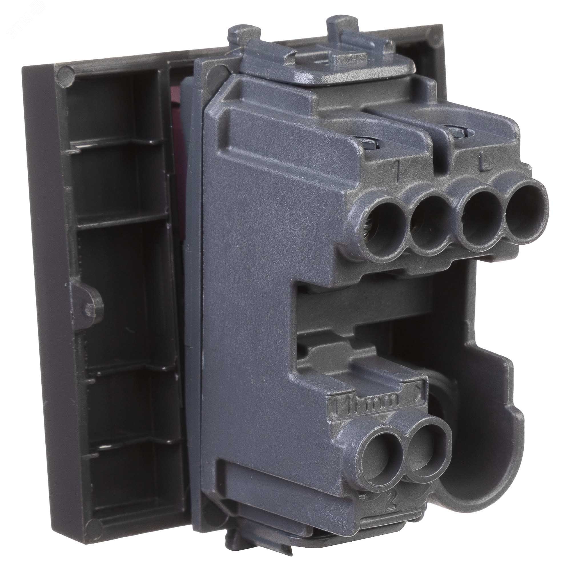 Выключатель одноклавишный однополюсный, модульный. Предназначен для монтажа в систему пластиковых кабельных коробов ''In-liner Front'' и систему организации рабочих мест ''Sotto'' (в т.ч. кабель-каналы и короба ''Aero'') при помощи рамок-суппортов и каркасов ''Avanti'' (код 4400912 и т.д.). Используется для включения/выключения освещения. Характеристики – диаметр отверстий для ввода кабелей - 3 мм (по 2 отверстия на одну клемму), винтовые зажимы, шаблон для зачистки кабеля - 11 мм, номинальный ток - 16 A, номинальное напряжение - 230 В. Возможна фиксация в подрозеточные коробки при помощи каркаса с лапками (код 4400802) и саморезов. 2 модуля. Цвет – ''Черный матовый''.