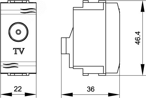 ТВ розетка универсальная (с согласующим сопротивлением). Назначение- подключение телевизионного кабеля. Кол-во модулей- 1. Цвет- белый