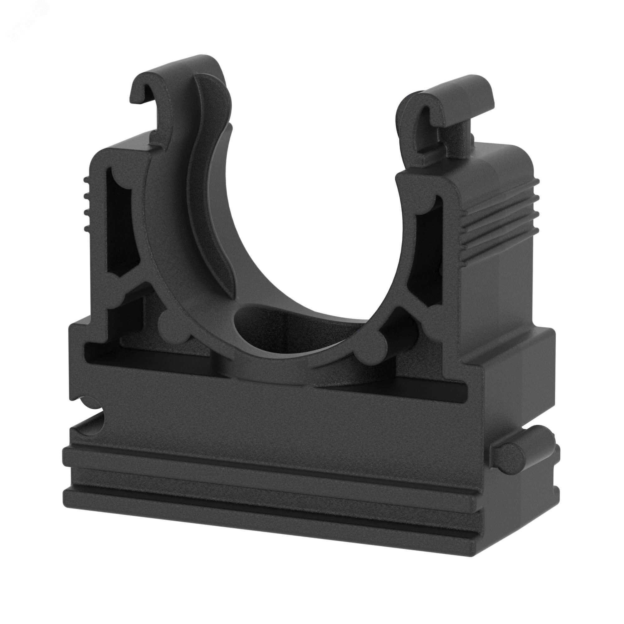 Держатель для труб. Номинальный диаметр: 17 мм. Материал - полиамид (PA6.6). Цвет: черный. Температура эксплуатации от -40 до +105 градусов по Цельсию (кратковременное воздействие до +150 градусов по Цельсию). Не содержит галогенов. Используется для крепления гофрированных полиамидных труб к корпусам оборудования, поверхности стен, потолков и перегородок.