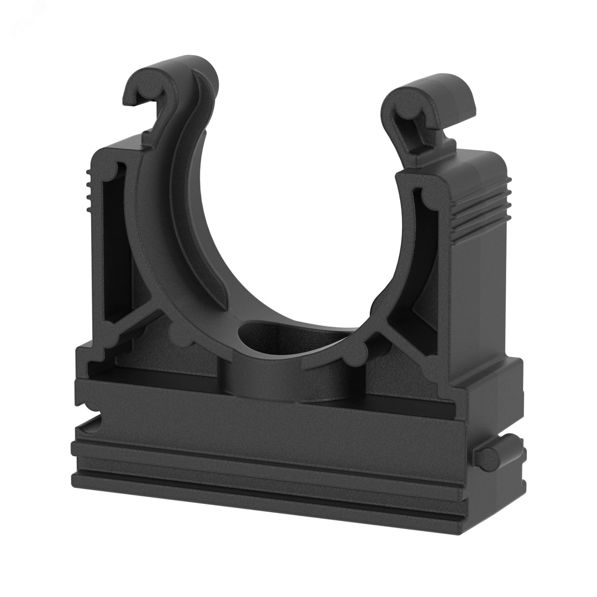 Держатель для труб. Номинальный диаметр: 23 мм. Материал - полиамид (PA6.6). Цвет: черный. Температура эксплуатации от -40 до +105 градусов по Цельсию (кратковременное воздействие до +150 градусов по Цельсию). Не содержит галогенов. Используется для крепления гофрированных полиамидных труб к корпусам оборудования, поверхности стен, потолков и перегородок.