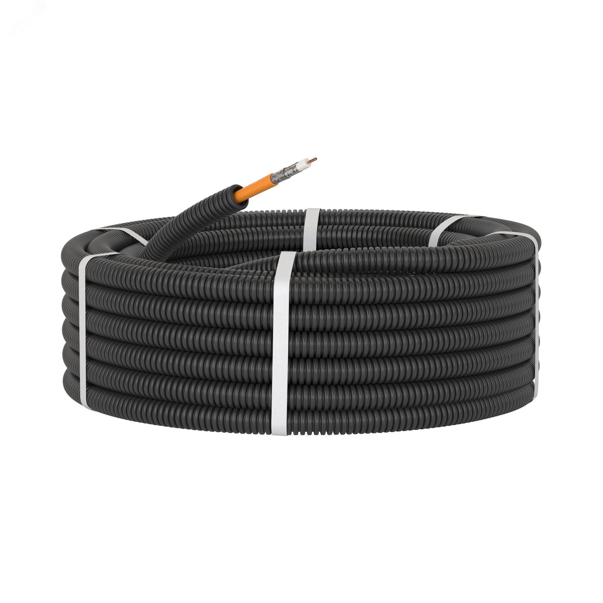 Электротехнические гибкие гофрированные трубы из ПНД используются для скрытой прокладки в штробах стен, стяжке полов, при монолитном бетоностроении. Электротруба - это гофрированная труба с уже протянутым внутри коаксиальным кабелем SAT нг(А)-HF. Такое решение значительно сокращает время монтажа и предупреждает возможное повреждение кабеля при протяжке. Характеристики кабеля: класс экранирования - А, диаметр по изоляции - 4,8 мм, волновое сопротивление 75 Ом, тип исполнения - нг(А)-HF. Характеристики трубы: гофрированная труба ПНД диаметром 20мм, цвет - черный. 100м в бухте.