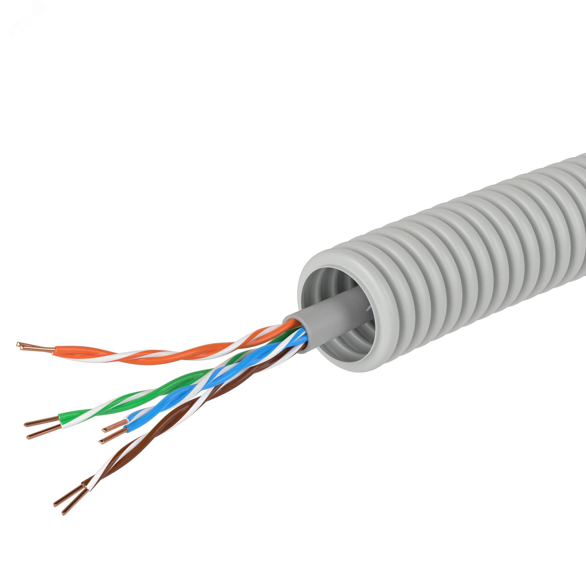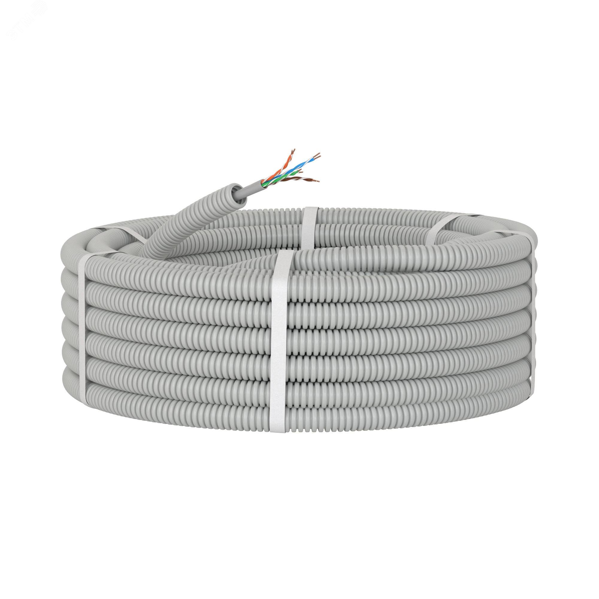 Электротехнические гибкие гофрированные трубы из ПВХ используются для прокладки в стенных штробах, в пустотах фальш-потолков и фальш-стен, в стяжке полов или под фальш-полами. Электротруба - это гофрированная труба с уже протянутым внутри информационным кабелем витая пара CAT 5E U/UTP нг(А)-HF. Такое решение значительно сокращает время монтажа и предупреждает возможное повреждение кабеля при протяжке. Характеристики кабеля: категория (Cat) - 5Е, кол-во жил – 8, диаметр проводника – 0,51 мм, тип исполнения - нг(А)-HF. Характеристики трубы: гофрированная труба ПВХ диаметром 16мм, цвет - серый. 25м в бухте.