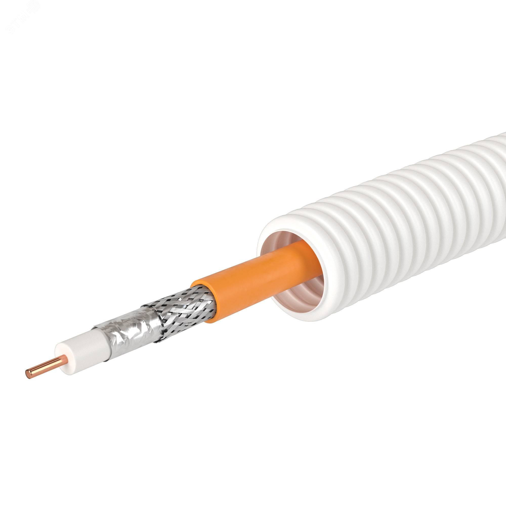 Безгалогеновые электротехнические гибкие гофрированные трубы изготовлены из специального полимера, который не выделяет вредных веществ при нагревании. Это их свойство делает такие трубы незаменимыми при строительстве и прокладке кабеля на объектах, предназначенных для пребывания большого количества людей. Электротруба - это гофрированная труба с уже протянутым внутри коаксиальным кабелем SAT нг(А)-HF. Такое решение значительно сокращает время монтажа и предупреждает возможное повреждение кабеля при протяжке. Характеристики кабеля: класс экранирования - А, диаметр по изоляции - 4,8 мм, волновое сопротивление 75 Ом, тип исполнения - нг(А)-HF. Характеристики трубы: гофрированная труба ПЛЛ диаметром 20мм, цвет - белый. 100м в бухте.