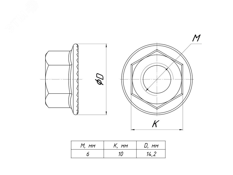 Гайка с фланцем М6 TDZ, производитель: EKF — купить с доставкой