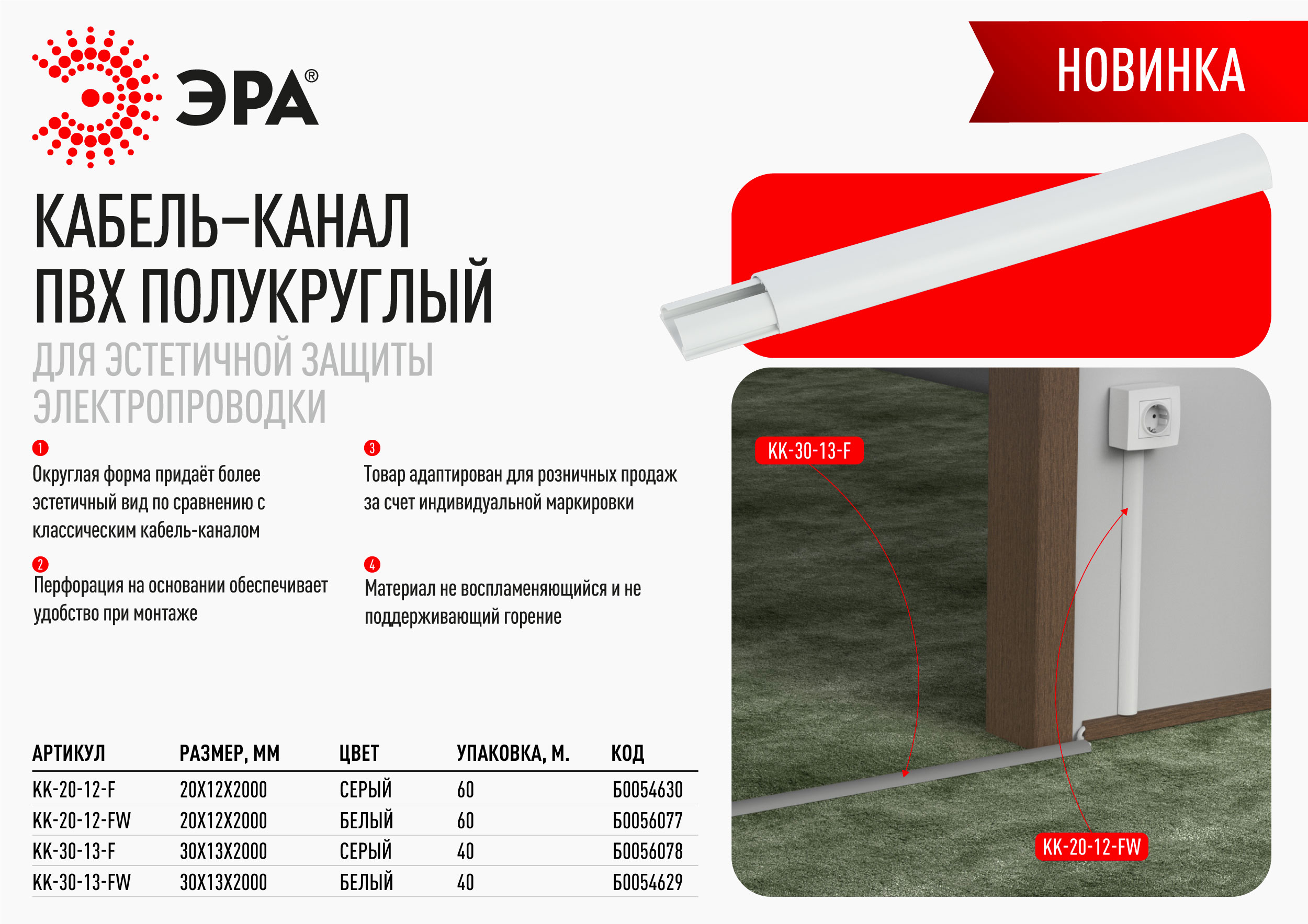 Полукруглый ПВХ кабель-канал ЭРА для эстетичной защиты электропроводки. Цвет - белый. Размеры: 30 х 13 мм. Длина - 2 м. Специальный конструктив полукруглого кабель-канала ЭРА не имеет аналогов на рынке. Округлая форма придает данному кабель-каналу более эстетичный вид по сравнению с классическим кабель-каналом. Перфорация на основании обеспечивает удобство при монтаже. Материал не воспламеняется и не поддерживает горение. Кабель-канал ударопрочный. Товар адаптирован для розничных продаж за счет индивидуальной маркировки.