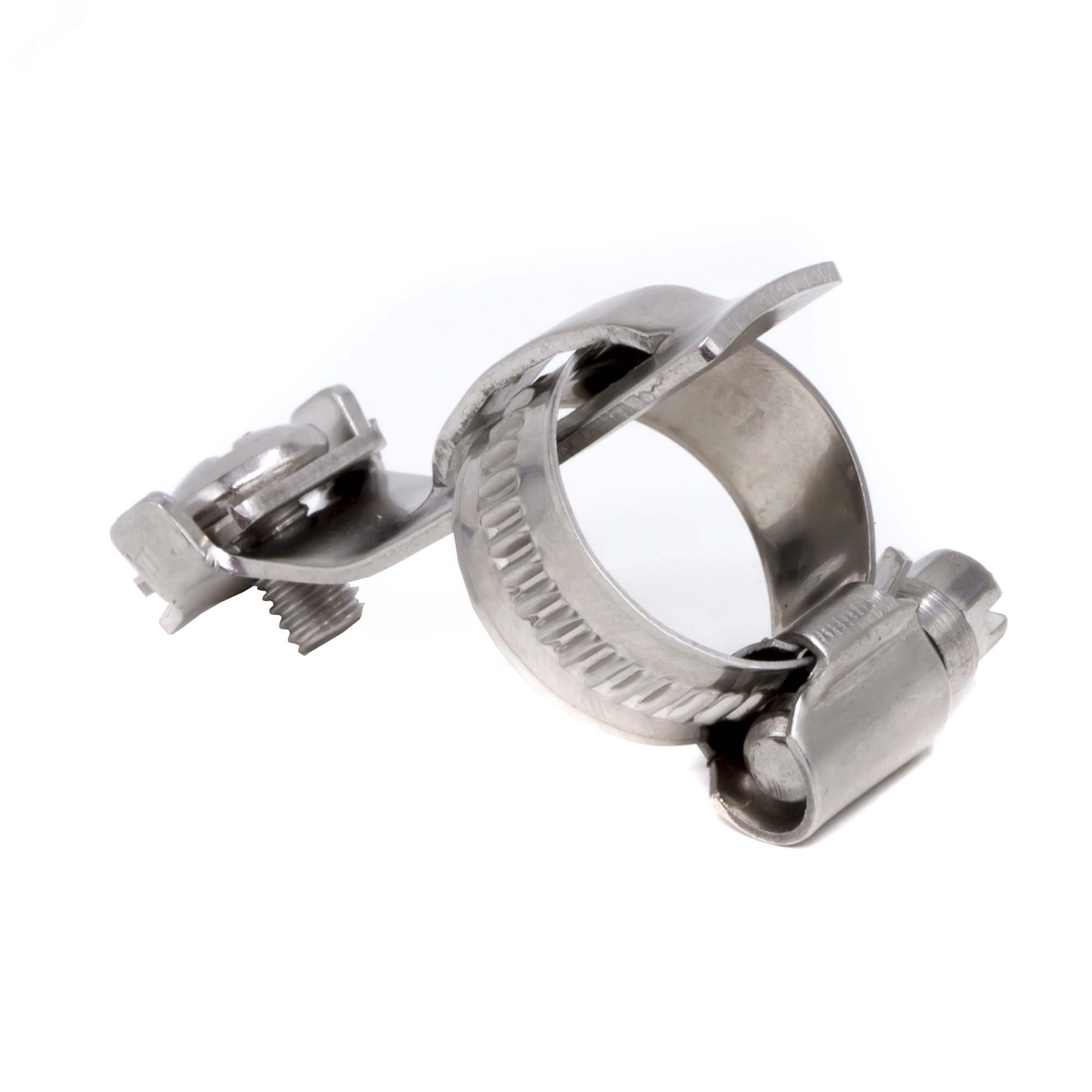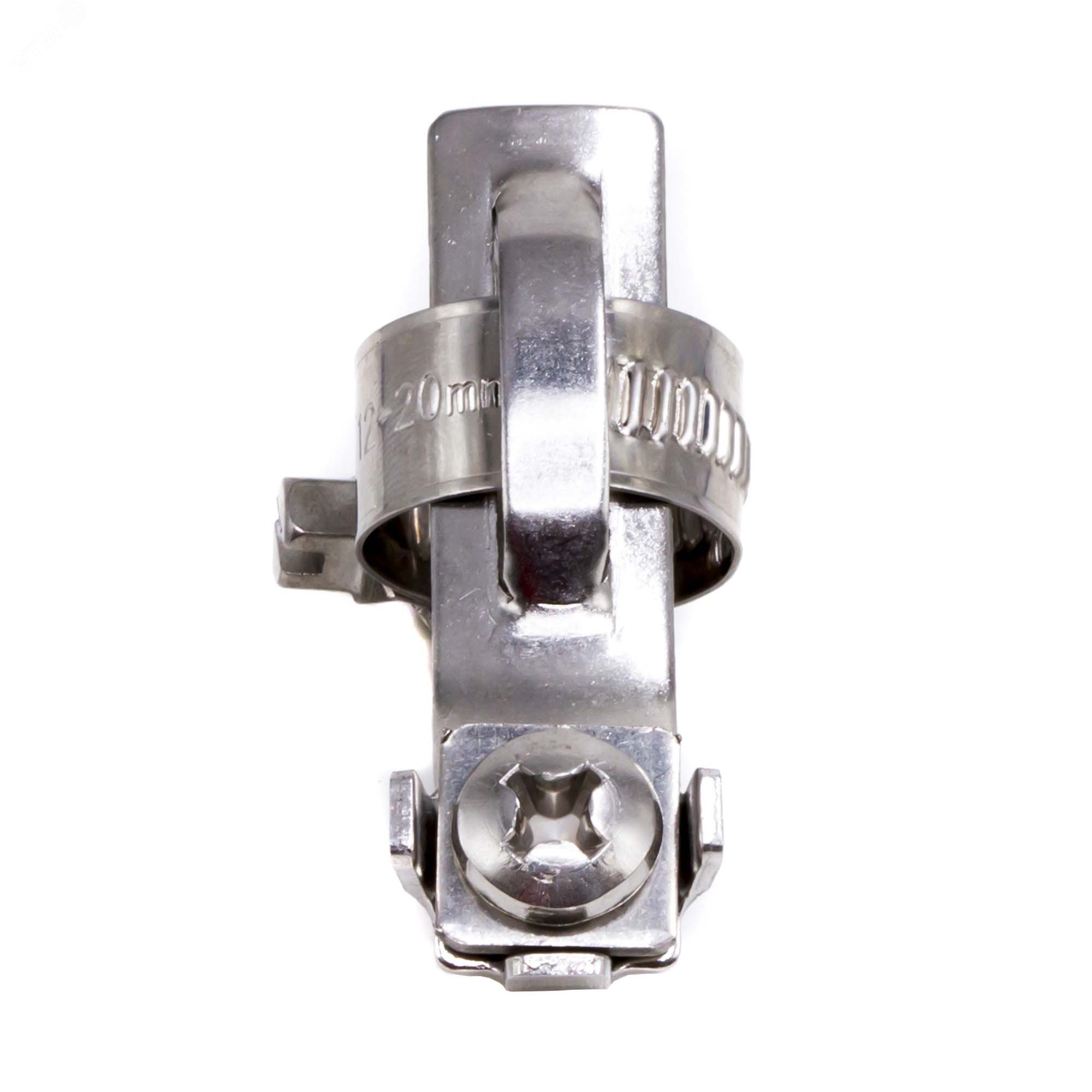 Хомут заземления используется для зануления, заземления, уравнивания потенциалов при прокладке кабеля в жестких металлических трубах и металлорукавах, обеспечивая непрерывный заземляющий контур. Материал - нержавеющая сталь SS201. Максимальное сечение провода - 6мм2. Хомут имеет механизм плавной бесступенчатой затяжки. Для труб и металлорукавов с внешним диаметром от 12 мм до 20мм.