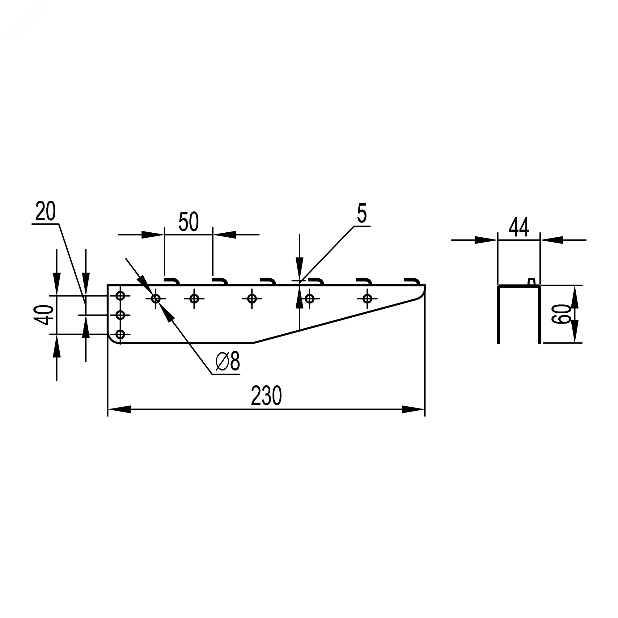 Консоль серии BM для проволочного лотка с шириной основания 200 мм. Предназначена для безвинтового монтажа кабельной трассы на основе системы проволочных лотков ‘‘F5 Combitech’‘ с максимально допустимой нагрузкой 250 кг. Крепление осуществляется к профилям PSM и PSL болтами М8х60 и гайками М8. Толщина стали - 1,5 мм.