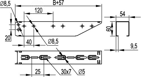 Предназначена для монтажа кабельных трасс. Крепление в профиль BPF. Консоль имеет П-образный профиль.