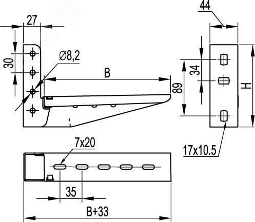 Характеристики: Консоль с опорой ML 100 мм облегченная