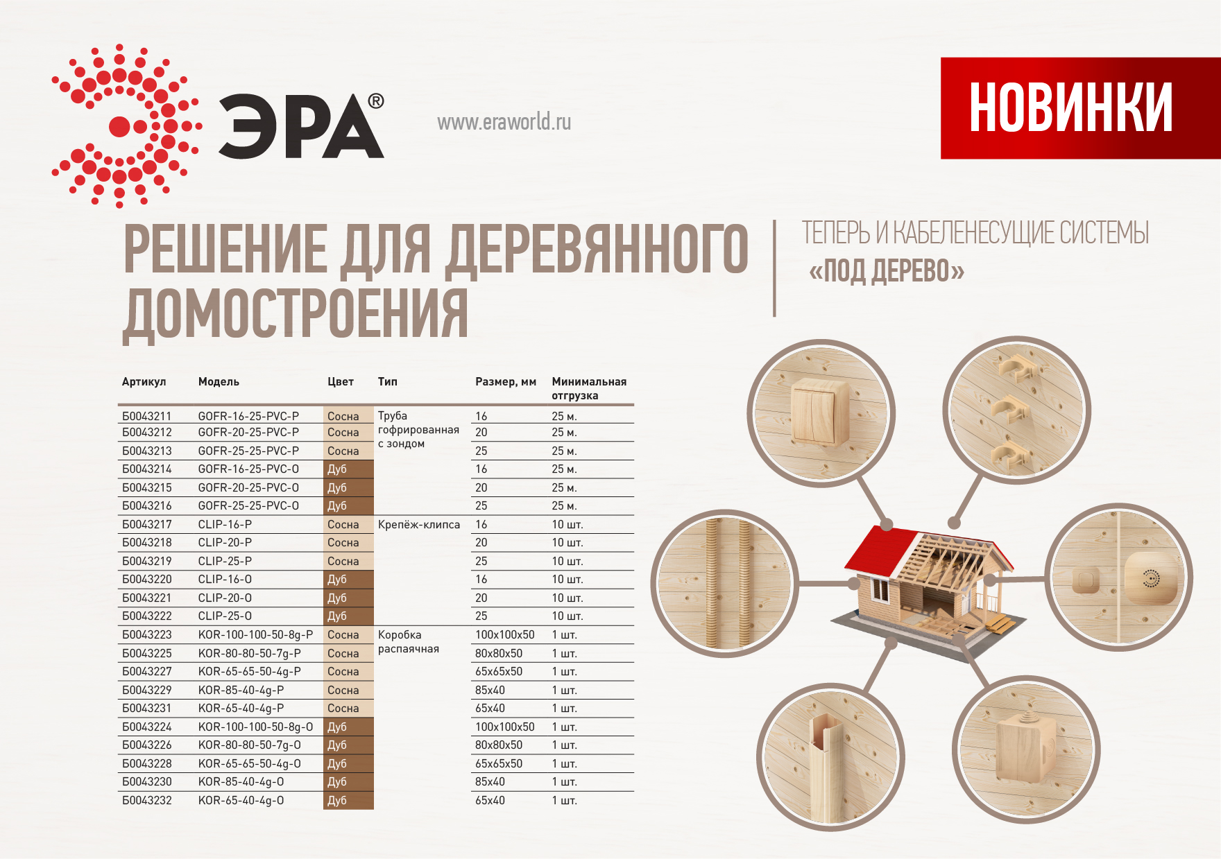 Крепеж-клипса (дуб) для трубы d 20мм (10/1400/42000), производитель: ЭРА — купить с доставкой