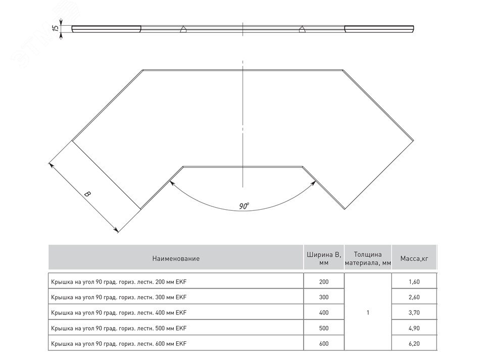 Крышка на угол 90 град. горизонтальный для лестничнго лотка 300мм, производитель: EKF — купить с доставкой