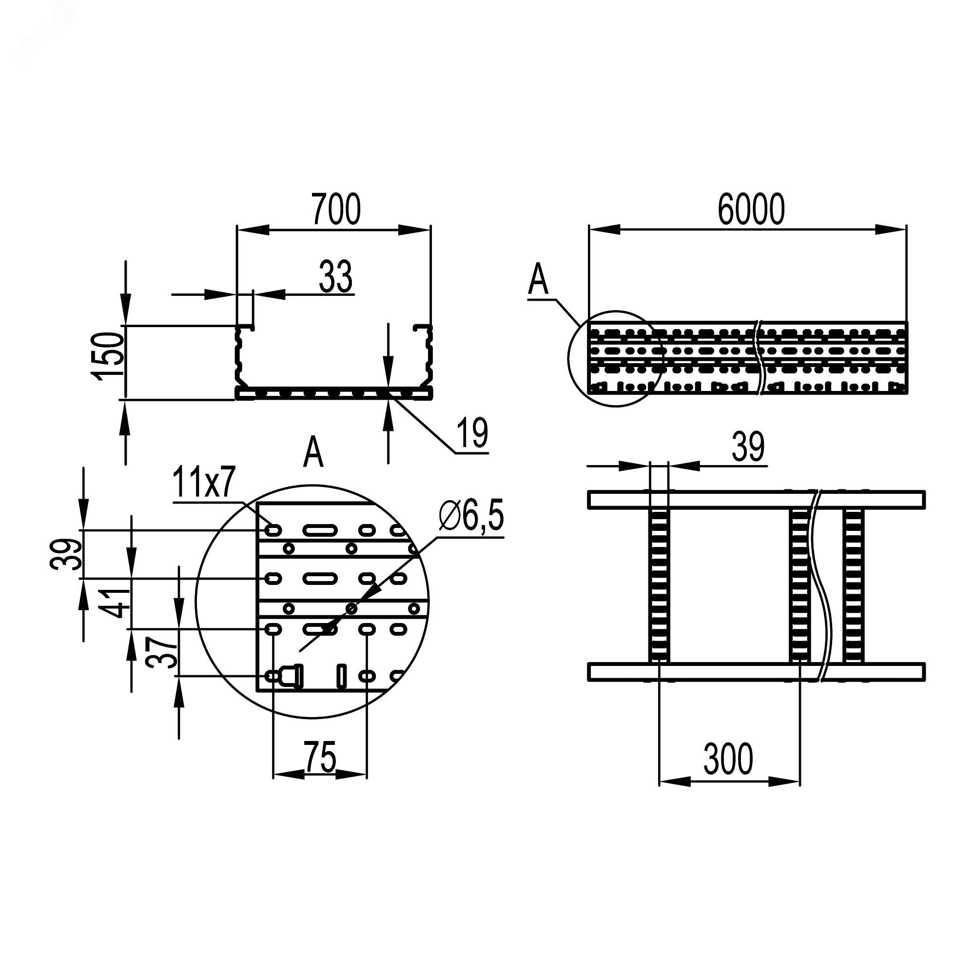 Характеристики: Лоток лестничный 150х700 лонжерон 1.5мм L=6000мм