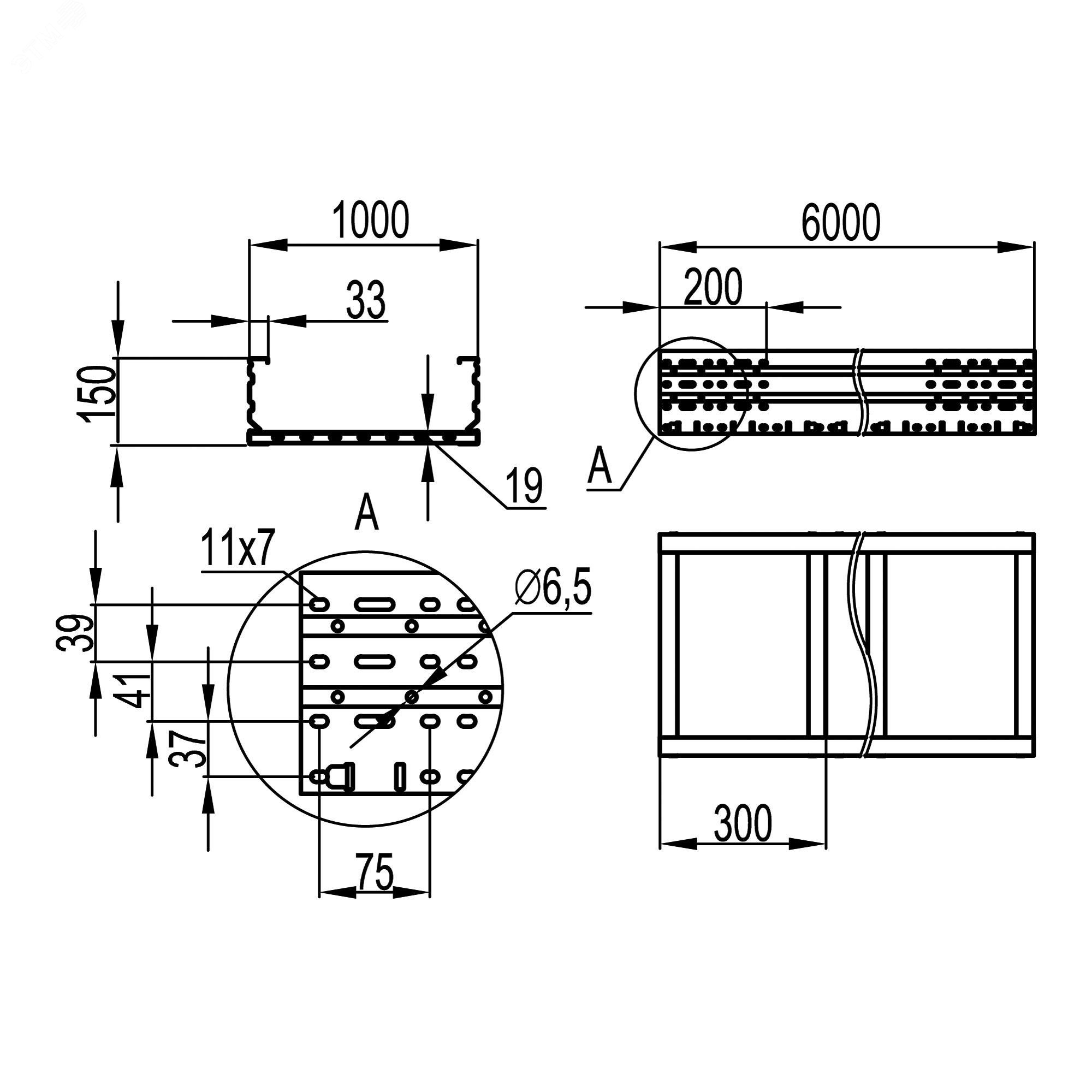 Характеристики: Лоток листовой неперфорированный 150х1000 лонжерон 2 мм L=6000мм