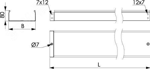 Неперфорированные листовые лотки ДКС применяются для прокладки кабеля как в помещении, так и на открытом воздухе. Лотки отличаются высокой несущей способностью - подформовка, производимая при производстве этой продукции, создает дополнительное ребро жесткости, что увеличивает несущую способность системы до 54%. При применении крышки и уплотнителей может достигаться степень пыле- и влагозащиты до IP44. Метод соединения ''мама-папа'' применяемый для системы, существенно сокращает время монтажа и создает непрерывный контур заземления. Конструктив листовых лотков ДКС предупреждает повреждение кабеля при прокладке. Толщина стали - 1.2 мм, высота лотка - 80 мм, ширина - 100 мм, длина - 3000 мм. Лотки в специальном представлении ''Горячий цинк'' имеют повышенную устойчивость к коррозии - они защищены от появления ржавчины на 30-50 лет (в зависимости от того, в каких условиях эксплуатируется кабельная трасса).