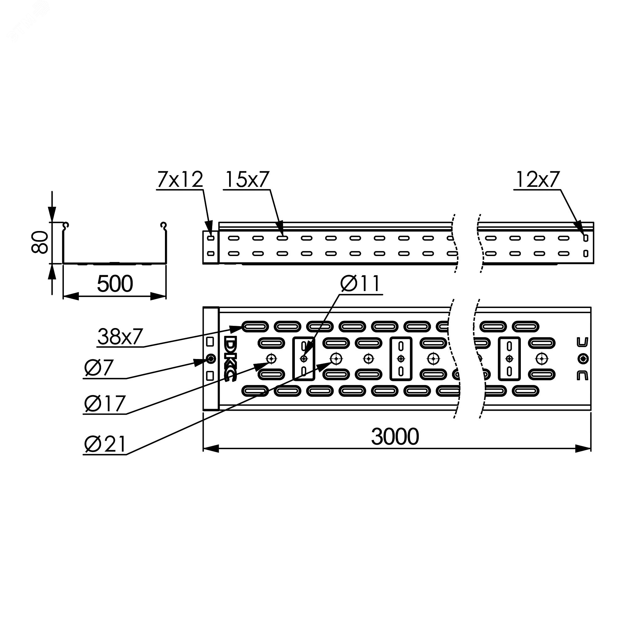 Лоток перф 500х80х3000 35307 цинк-ламель, производитель: DKC — купить с доставкой
