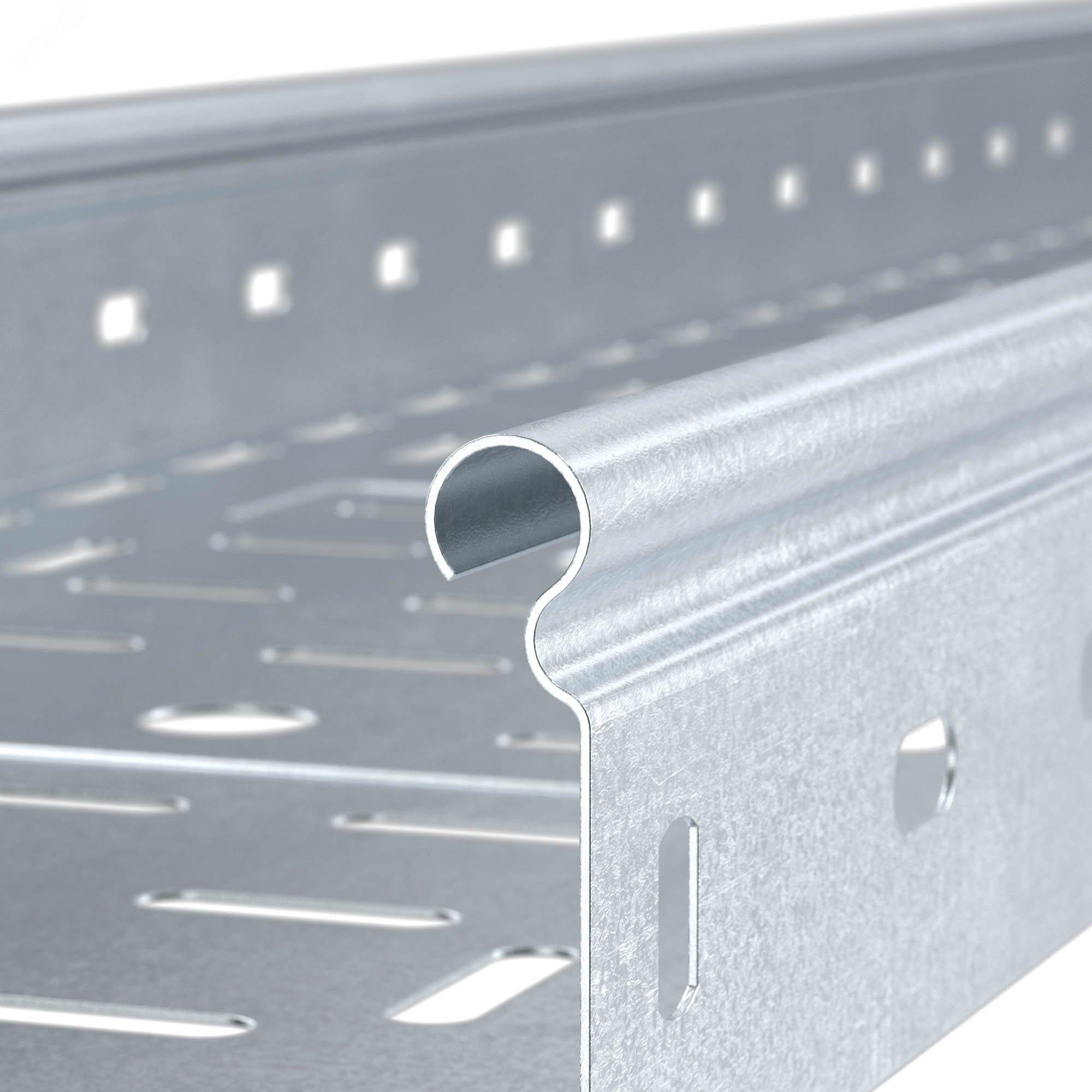 - S-образная форма кромки борта лотка обеспечивает защиту кабеля от повреждения