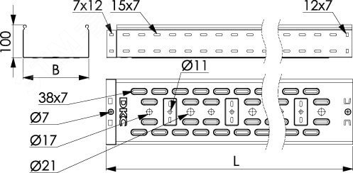 Лоток перфорированный 500х100 L 2000 цинк-ламельный, производитель: DKC — купить с доставкой