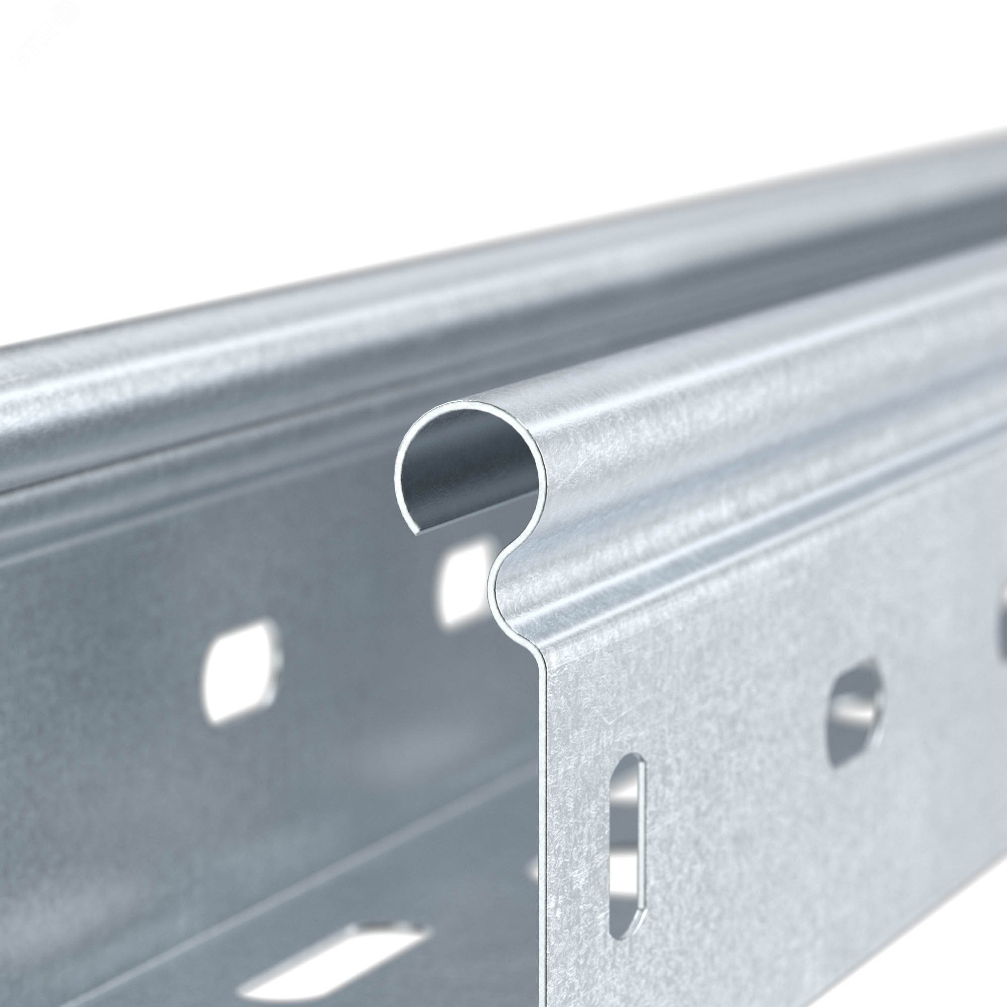 - S-образная форма кромки борта лотка обеспечивает защиту кабеля от повреждения