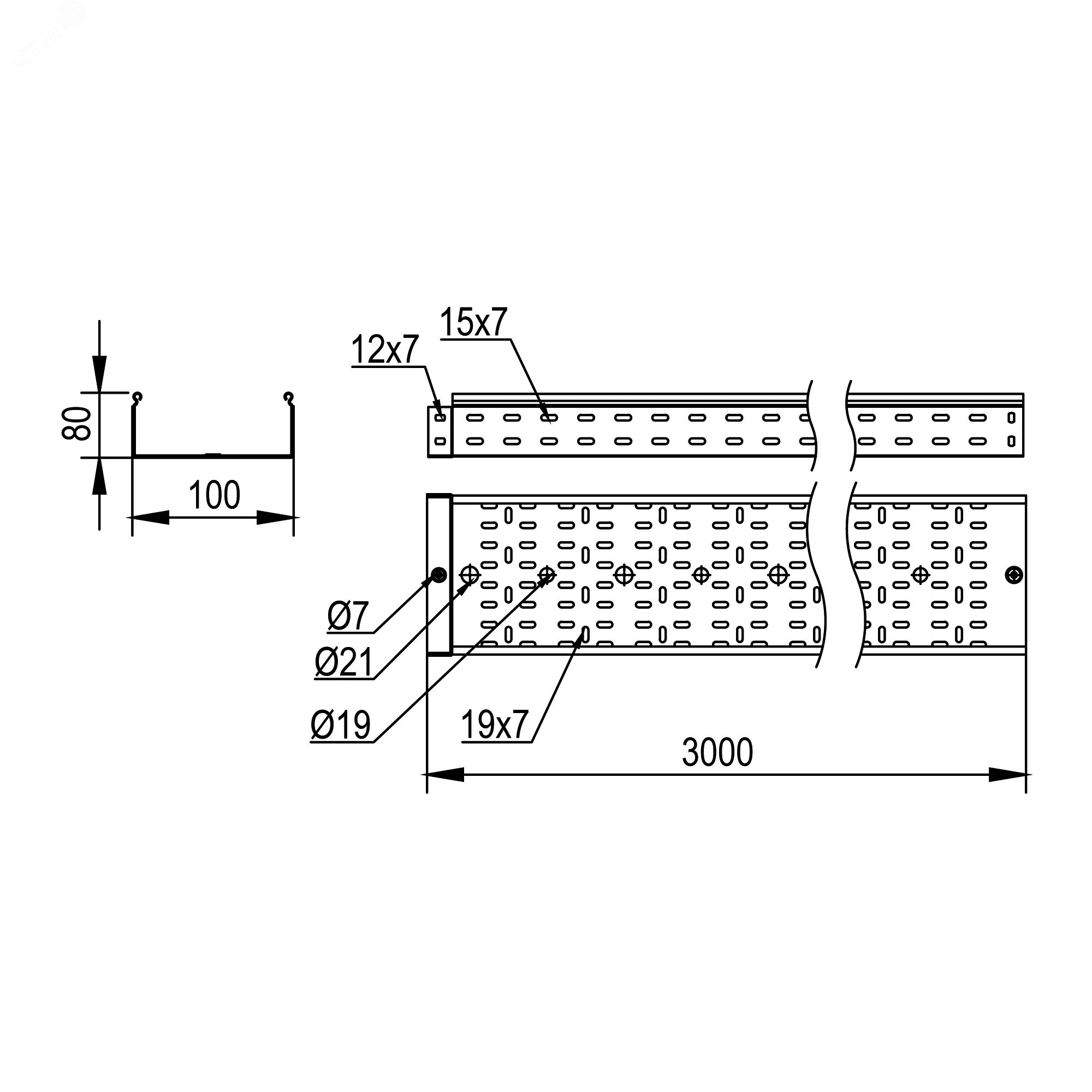 Лоток перфорированный 80х100х3000, 2,0 мм, производитель: DKC — купить с доставкой
