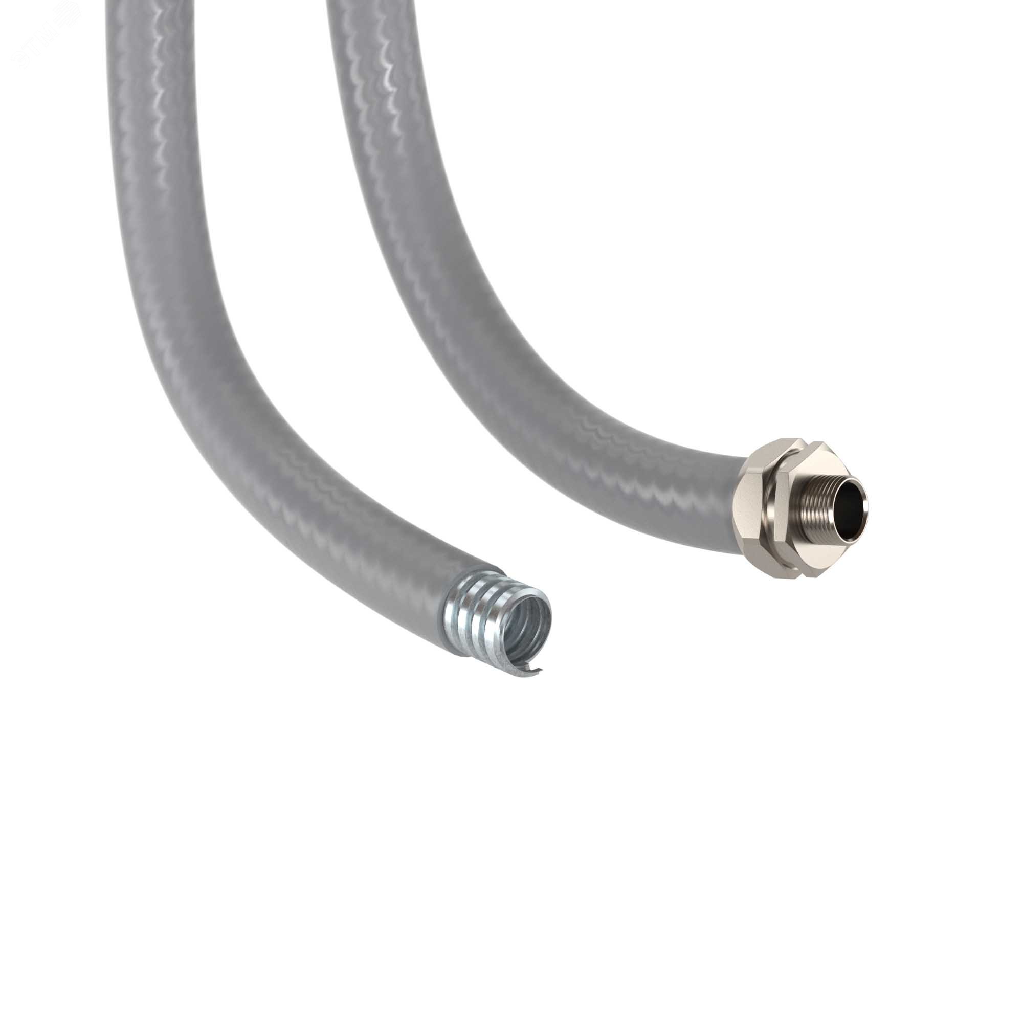 Металлорукав в гладкой ПВХ-оболочке с усиленным замком. Диаметр: 26 мм. Цвет: серый. Степень защиты: IP66 при динамических воздействиях при прокладке, IP67 при статической прокладке. Температура монтажа и эксплуатации от -15 до +70 градусов по Цельсию. Отличительные особенности: стойкость к распространению горения, покрыт плотной гладкой оболочкой из ПВХ, высокая химическая стойкость к маслам и смазкам, герметичный монтаж во влажных и запыленных помещениях, гибкость, маркировка с указанием метража для удобства монтажа. Назначение: прокладка электрических, телефонных, компьютерных, телевизионных сетей, выполненных изолированными проводами, шнурами или кабелями, оптимальное решение для производственных предприятий.