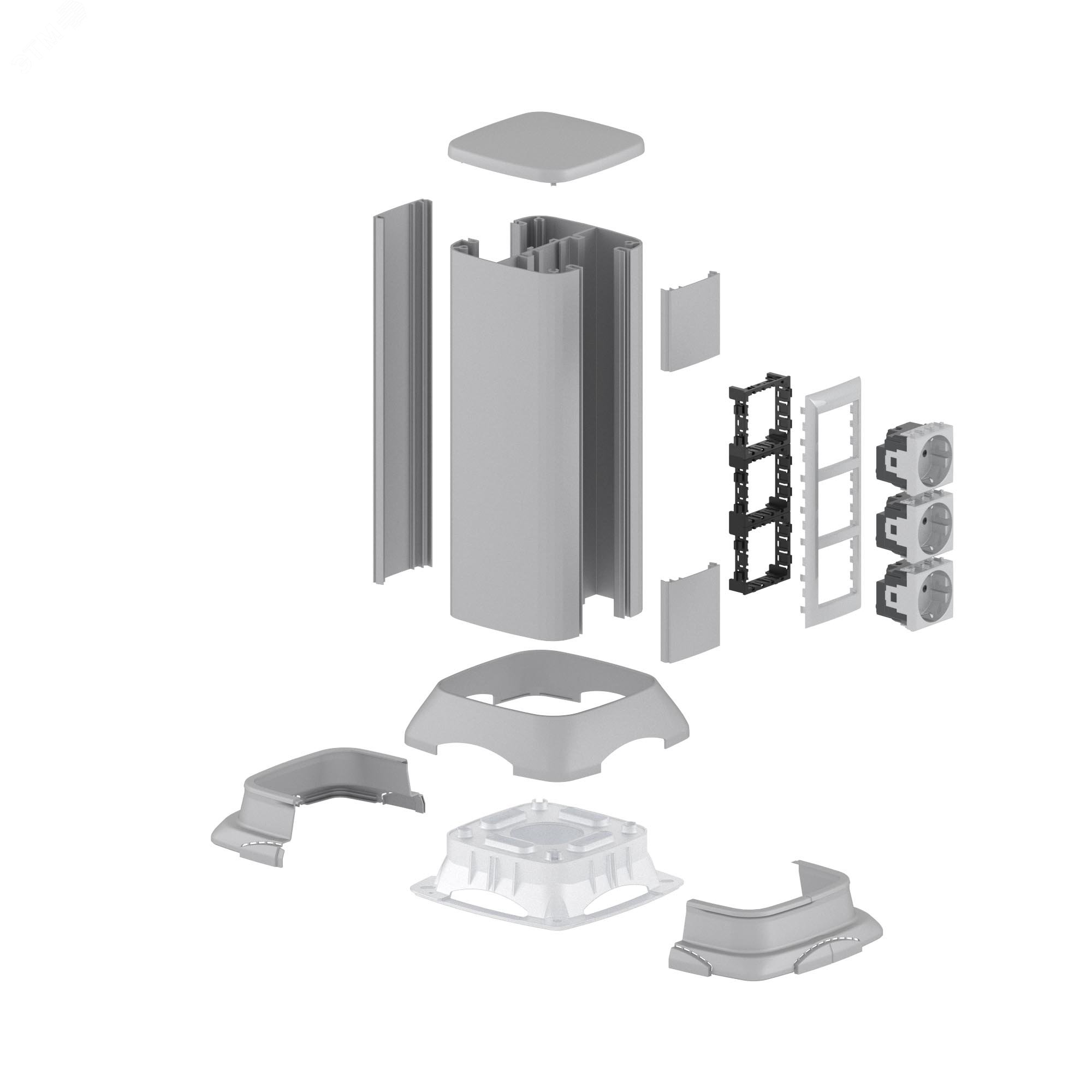Колонны Aero применяются для организации рабочих мест в зонах с ограниченным пространством и в помещениях, где рабочие места расположены далеко от стен. В них устанавливаются ЭУИ серий Avanti, Viva, Brava. Внутреннее пространство колонны разделяется алюминиевой перегородкой на две или три секции при помощи пластикового разделителя (код 01415). Стойка высотой 0,35 м устанавливается на пол и может вмещать до 16 модулей. Каркасы и рамки для ЭУИ заказываются дополнительно. Цвет – темно-серебристый, RAL 9006.