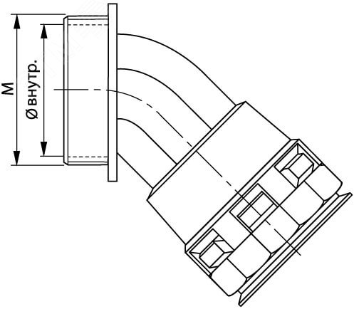 Монтажный комплект муфта 45 градусов 'труба-коробка', IP65/IP67. Номинальный диаметр 23 мм. Материал – полиамид (PA6.6). Цвет: черный. Температура эксплуатации от -40 до +105 градусов по Цельсию (кратк. воздействие до +150 градусов по Цельсию). Степень защиты IP65 без уплотнителей PAPM и IP67 с уплотнителями PAR и PAPM. Простая и надежная стыковка с трубой. Не содержит галогенов. Используется для ввода гофрированных полиамидных труб в корпуса оборудования, шкафы, щитки, распаечные коробки под углом 45 градусов.