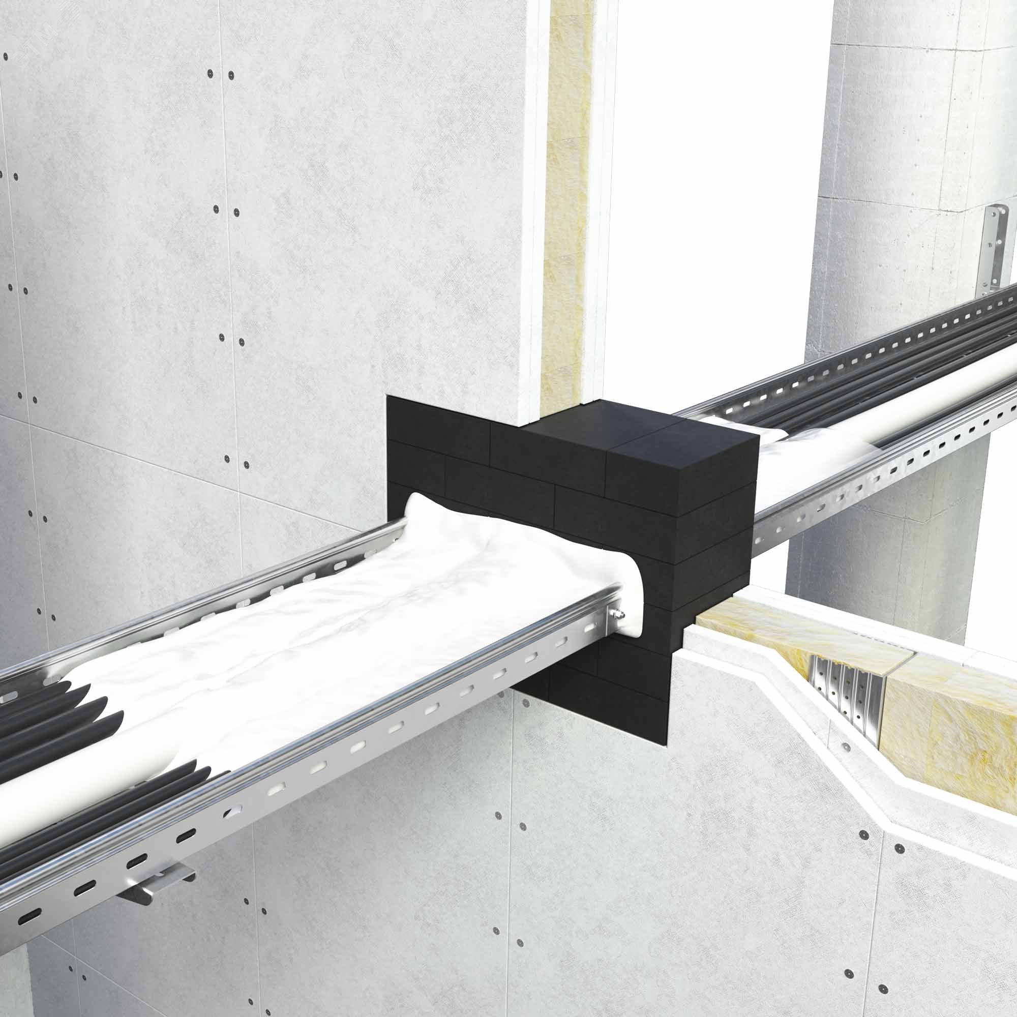 Огнеупорные пеноблоки - основа для создания герметичных огнестойких проходок в местах прохода металлических лотков через стены или перекрытия. Отличительной особенностью проходок такого типа является легкость монтажа - достаточно всего лишь заложить в проем предварительно нарезанные брикеты пеноблока. Кроме того, преимуществами является возможность быстрой прокладки дополнительного кабеля в уже смонтированную проходку, отсутствие пыли.
