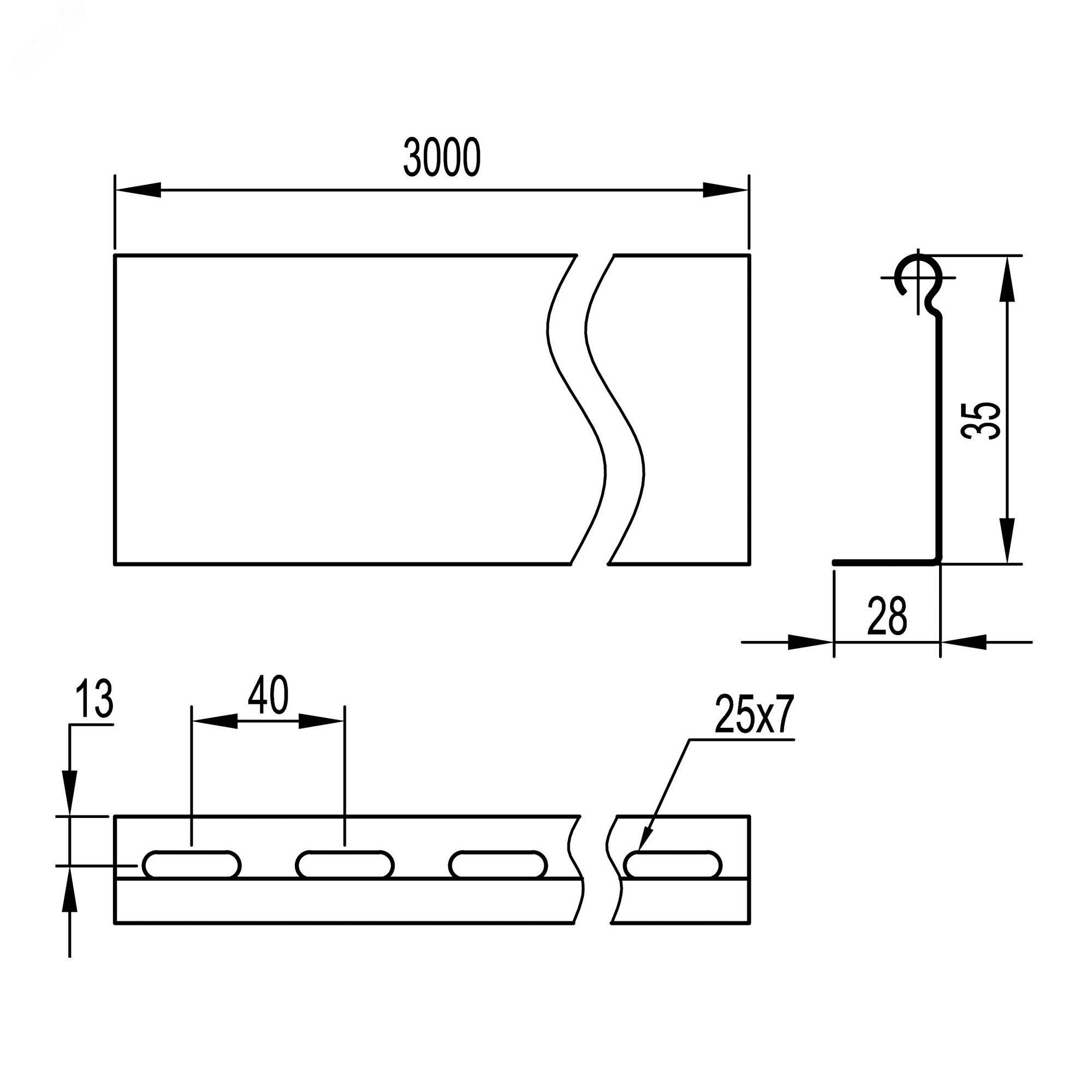 Перегородки предназначены для разделения электрических цепей различного назначения при их прокладке в одном лотке, чтобы предотвратить возникновение помех. Они изготовлены из стали толщиной 0,8 мм, имеют по длине ряд отверстий для крепления. Перегородки крепятся к лотку с помощью винтов М6х10 и гайками М6 с насечками. Длина – 3000 мм, высота – 35 мм.