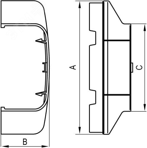 Переходник 140х50 мм – 90х50 мм. Назначение – переход с одного типоразмера кабельного короба на другой типоразмер совместно с аксессуарами тройник, угол внутренний, угол внешний, угол плоский. Характеристики – материал – АБС-пластик окрашенный, переходник вставляется широкой стороной в аксессуар, узкой стороной защелкивается на короб меньшего размера. Цвет – серебристый металлик RAL 9006.