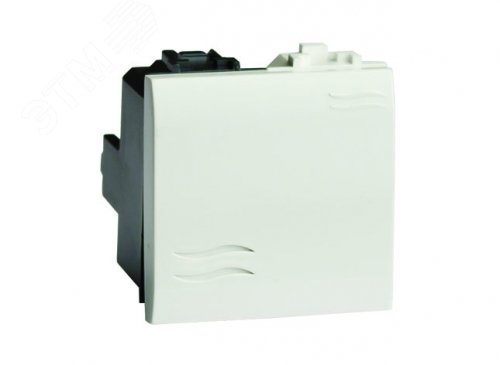 Переключатель (проходной выключатель). Назначение- включение/выключение освещения. Переключатели устанавливаются по 2 шт. на одну цепь для управления освещением из 2-х точек в коридорах, проходах, гостиничных номерах (у входной двери, изголовья кровати), проходных комнатах и т. д. Характеристики- номинальный ток ? 16 А, номинальное напряжение ? 250 B. Кол-во модулей- 1. Цвет- черный