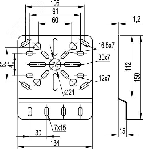В систему лестничных лотков ''L5 Combitech'' входит ряд аксессуаров, делающих монтаж быстрее, проще и безопаснее. Вертикальная монтажная пластина предназначена для быстрого монтажа ответвительных коробок ДКС серии ''Express''. При разработке перфорации на пластинах во внимание были приняты именно монтажные отверстия на этих ответвительных коробках. Монтажную пластину размещают на лонжероне лотка и фиксируют гайками М6и винтами М6х10. Исполнение аксессуара - ''Сталь, оцинкованная по методу Сендзимира''.