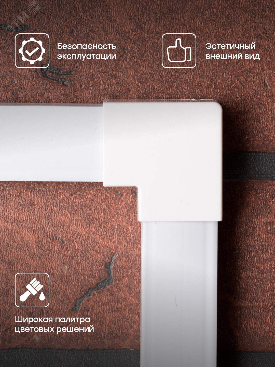 Широкий ассортимент аксессуаров для стыковки и монтажа кабельных каналов позволяет реализовать законченное и эстетическое решение по скрытой прокладке кабельных трасс. Преимущества - все аксессуары монтируются легким защелкиванием и не требуют применения инструментов и крепежа, Сертификат ОКЛ. Цвет - белый, светлое дерево, темное дерево.